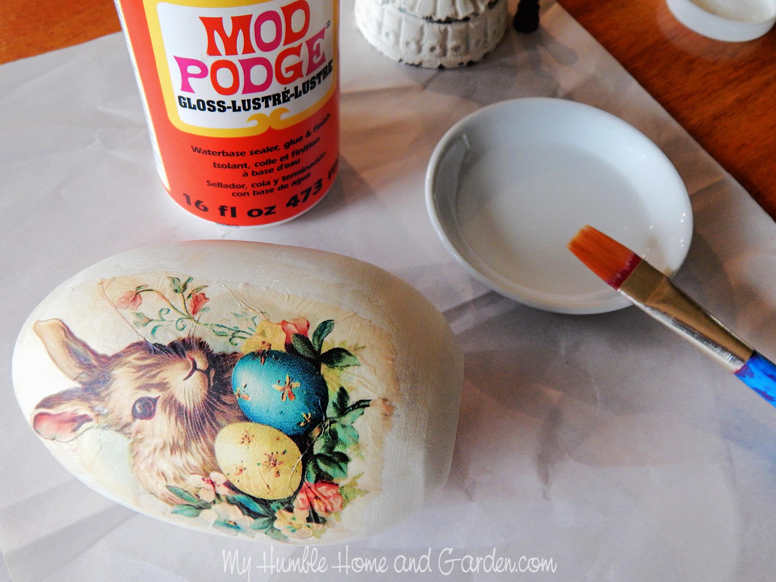 How to Make a Vintage Easter Egg Look-Alike – Paint a coat of Mod Podge over the entire egg. #vintageeasteregg #easteregg #easterdecor