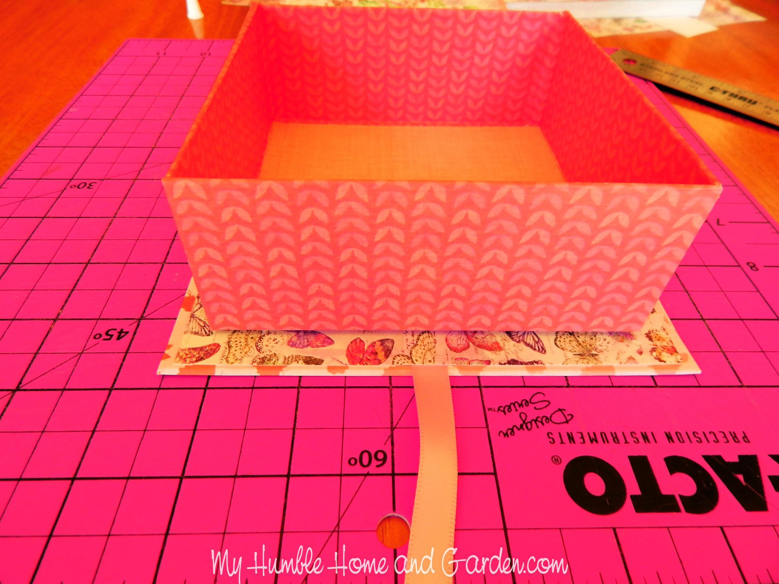 How to Make a Beautiful Flip-Top Box Apply glue to the bottom of the box and center the box on the bottom flap. #fliptopbox #decorativebox #foldoverbox #giftbox
