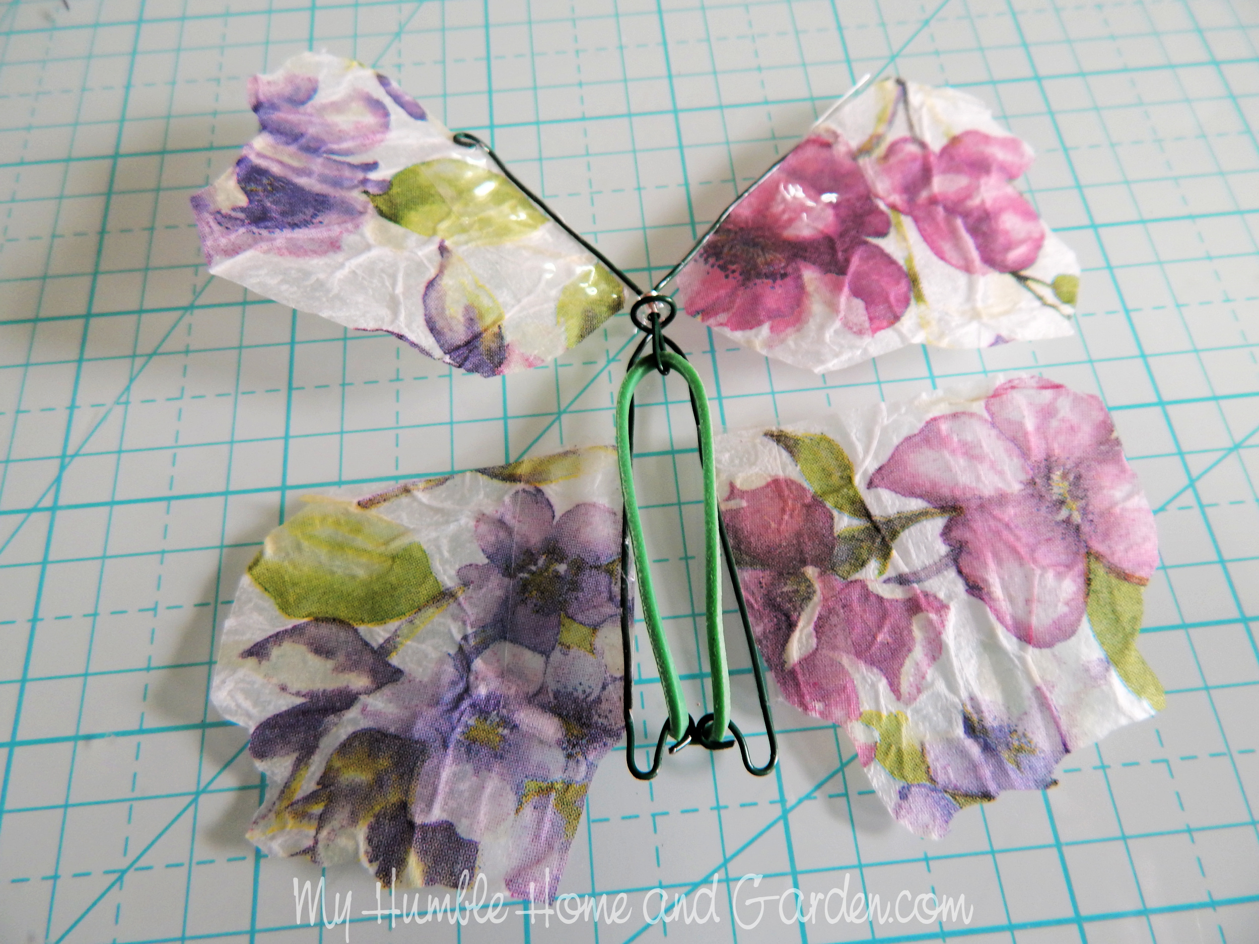 How to Make a Wind-Up Paper Flying Butterfly – Tape the two top wings. #flyingpaperbutterflies #paperbutterflies #windupbutterflies