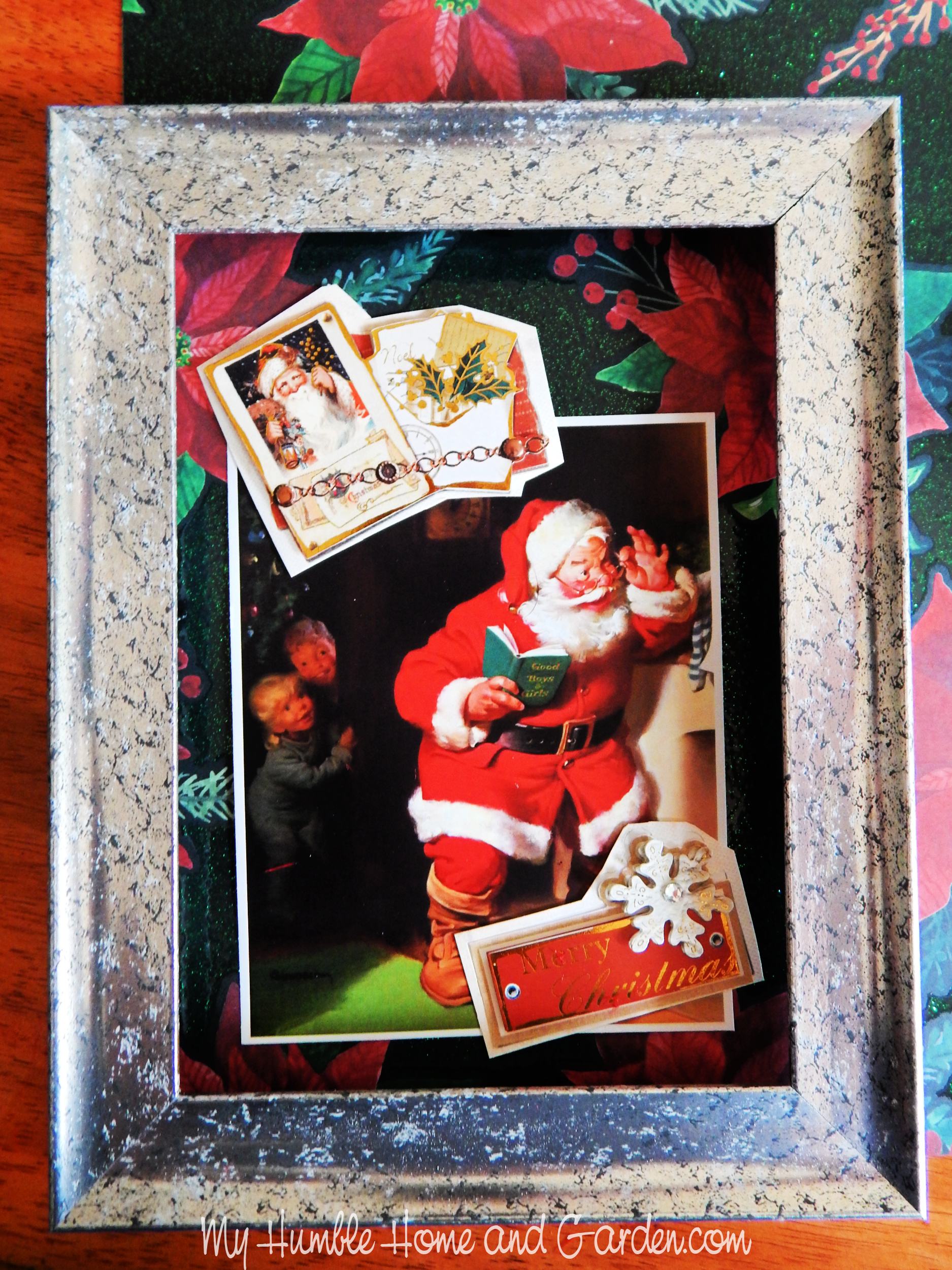 Christmas in July – How to Make Adorable Vintage Santa Decorations – Change the background. #Santadecor #vintagesanta #framedSanta