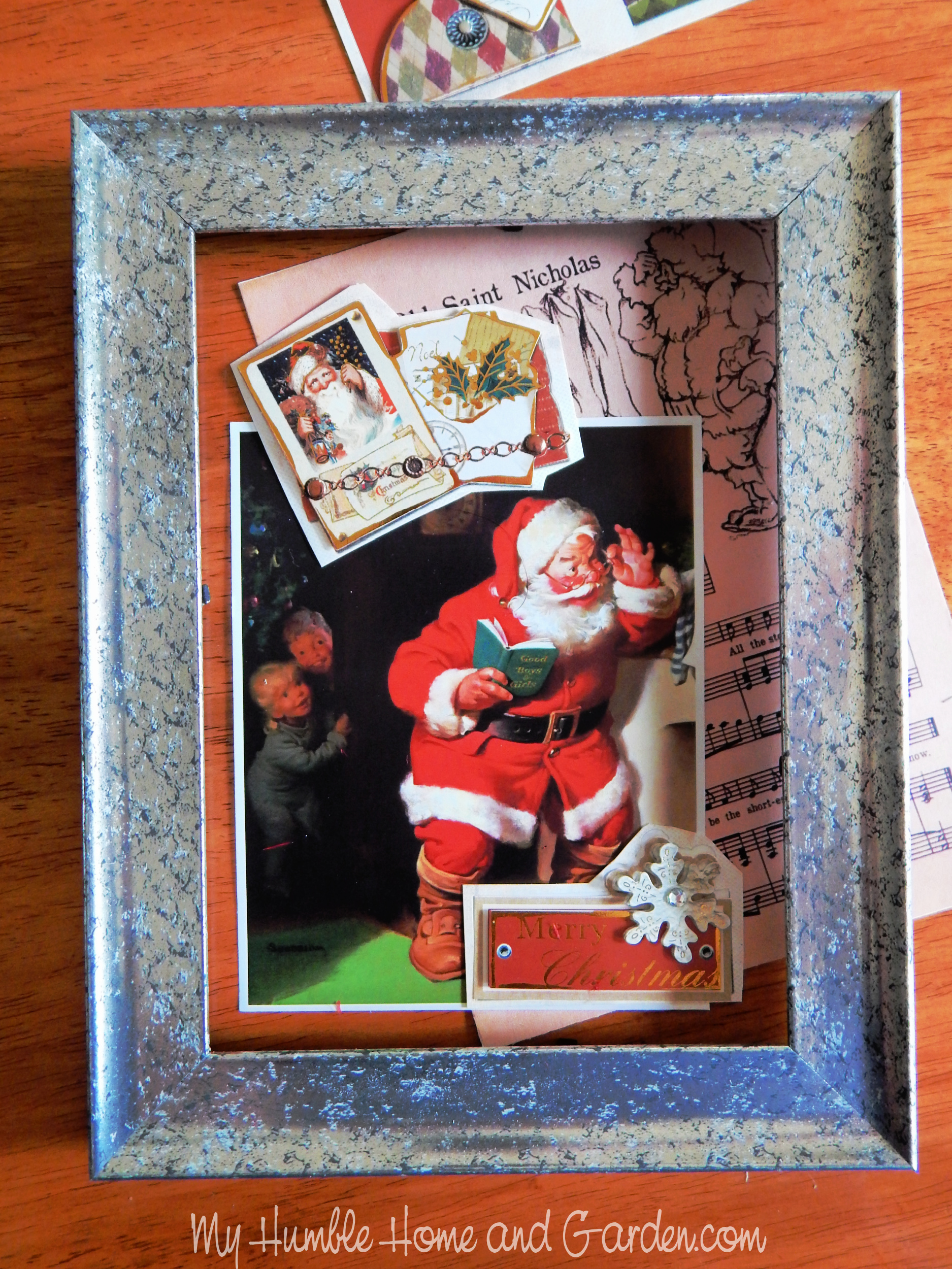 Christmas in July – How to Make Adorable Vintage Santa Decorations – First steps in planning the layout. #Santadecor #vintagesanta #framedSanta