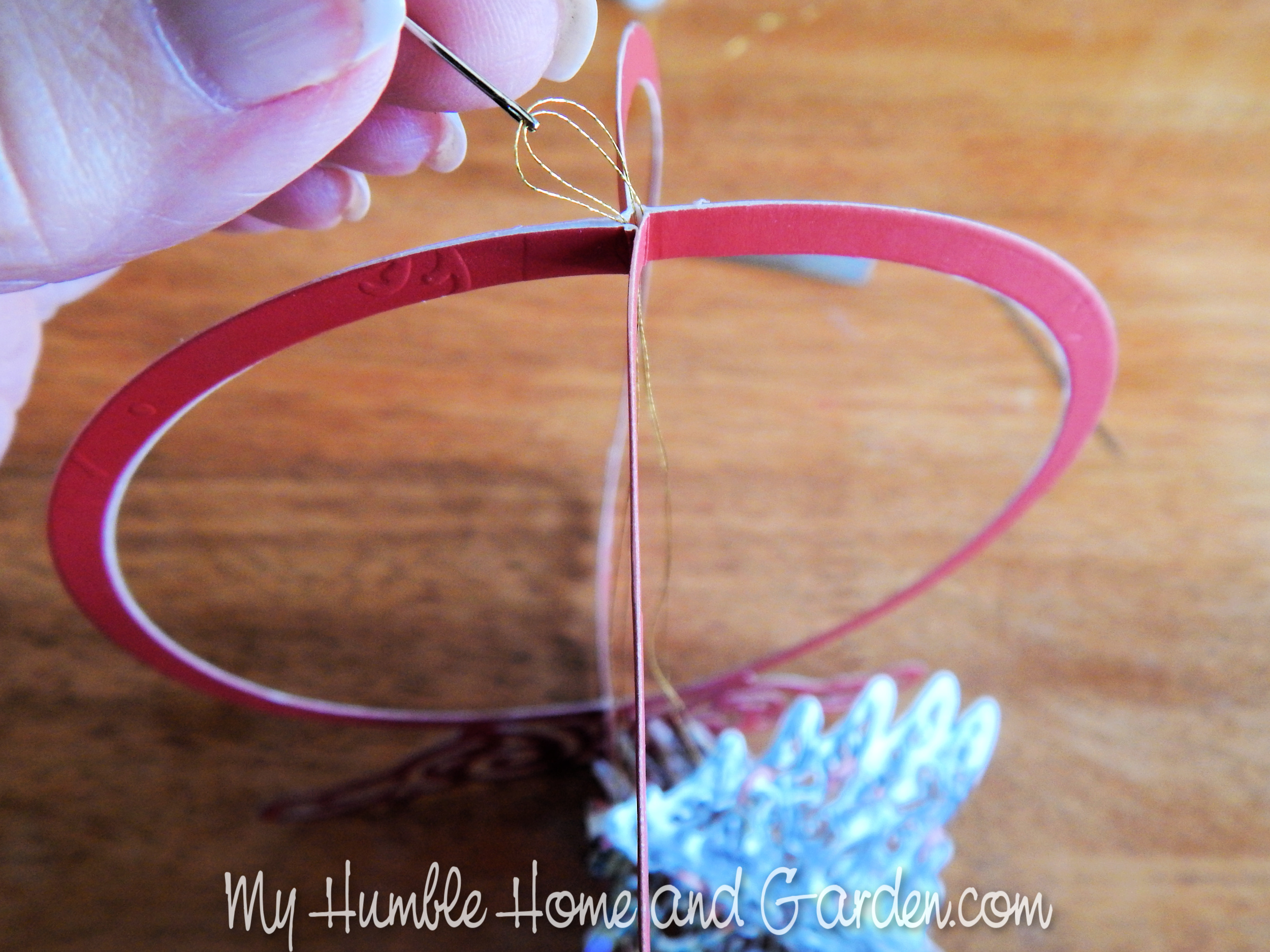 Beautiful Christmas Tree Crystal Ball – Upcycle Old Christmas Cards – Run the needle and threads up thru the middle of the globe base. Christmasdecor #Christmas #Christmasglobe