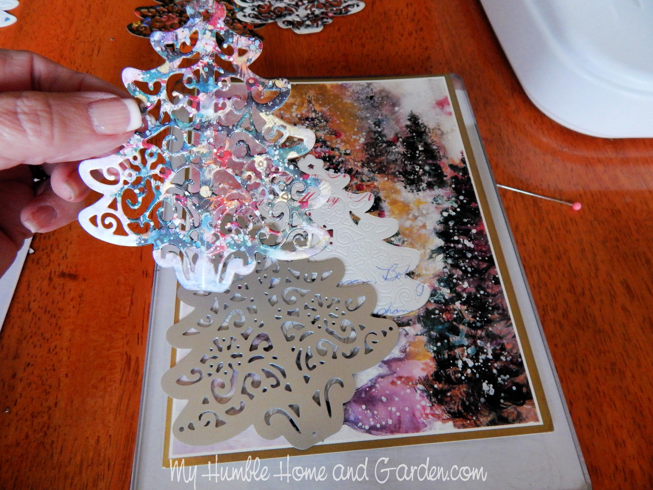 Beautiful Christmas Tree Crystal Ball – Upcycle Old Christmas Cards – Use a straight pin to remove cutouts before removing from the die.