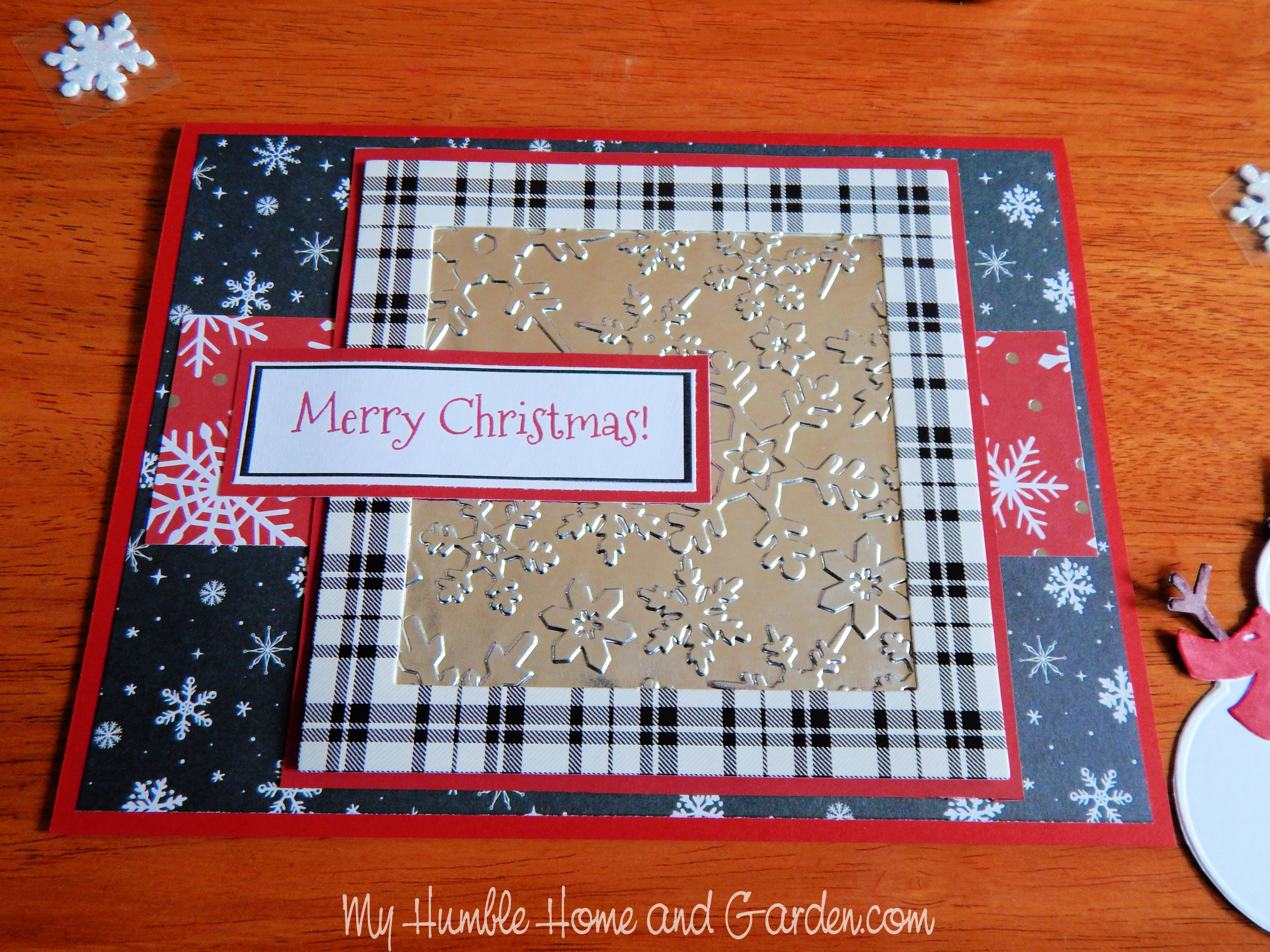 Ultimately, the printed Merry Christmas was glued to a piece of red cardstock, leaving a red border to set it off visually.
