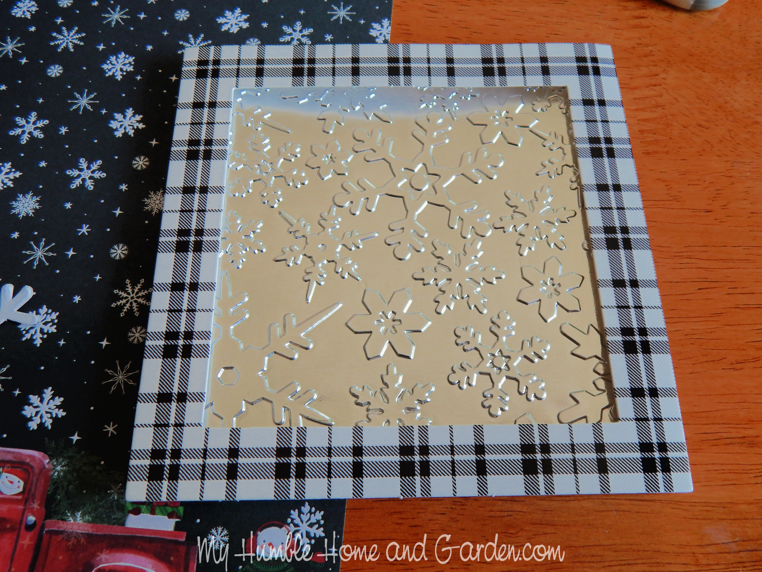 How to Use Tin Foil for Beautiful Christmas Cards – Cardstock frame for snowflake embossed tin foil. #Christmascards #DIYChristmascards #Christmascrafts