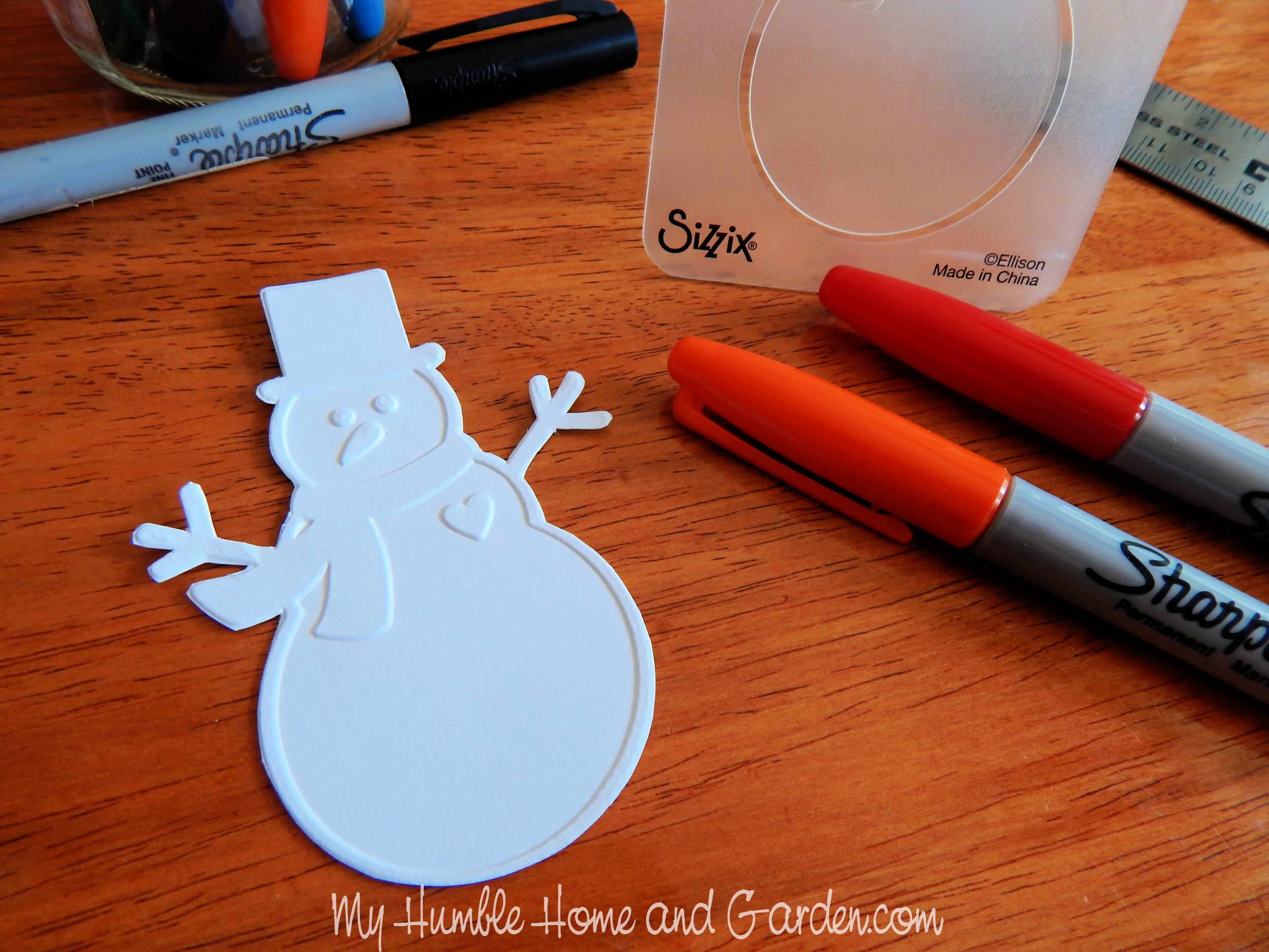 How to Use Tin Foil for Beautiful Christmas Cards – Use sharpies to add color to the embossed snowman. – #Christmascards #DIYChristmascards #Christmascrafts
