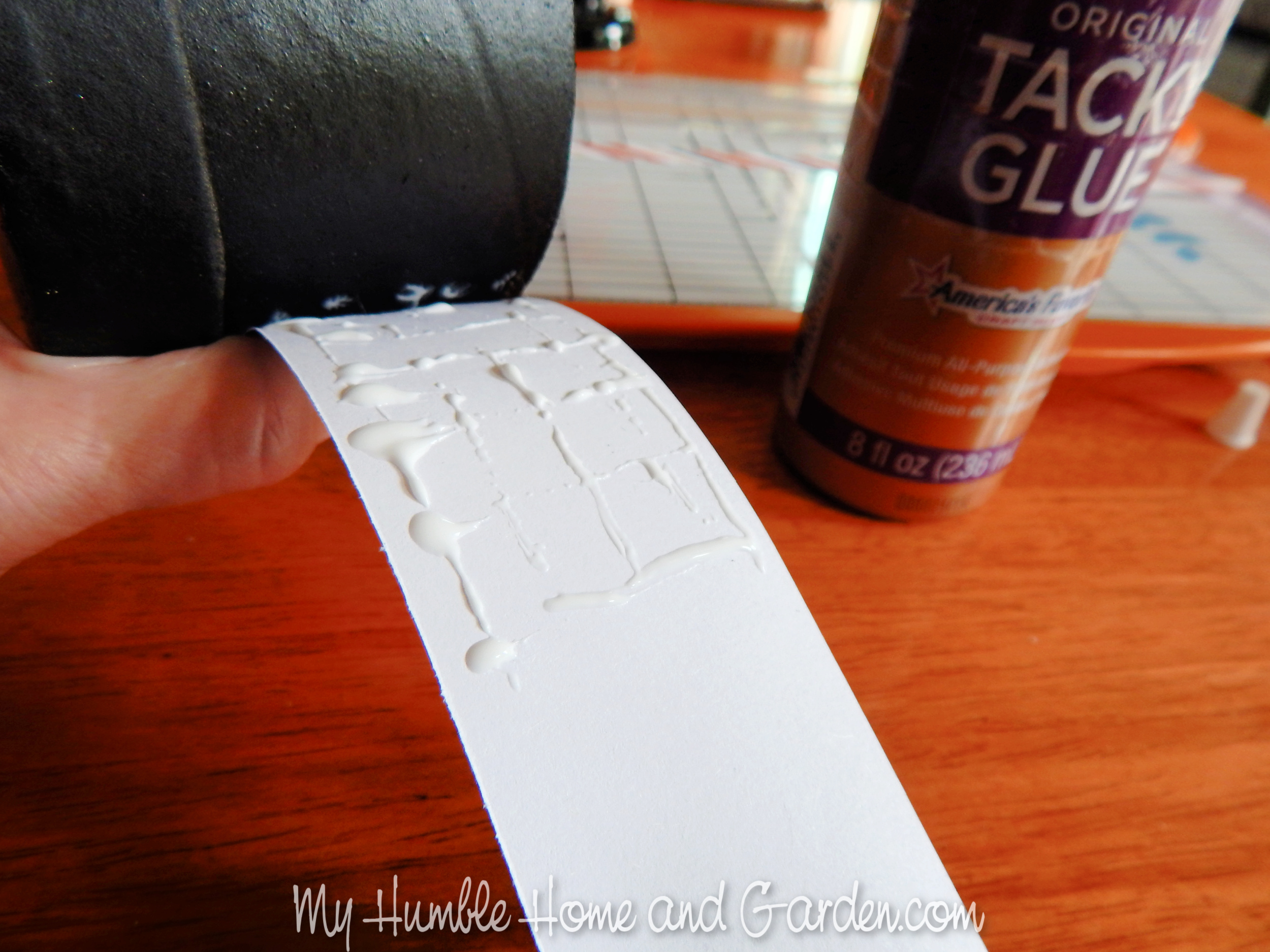 How to Decorate a Vintage Halloween Box – Apply glue to 2 or 3 inches at a time.#Halloweendecor #halloweenbox #vintagehalloween #vintagehalloweendecorations