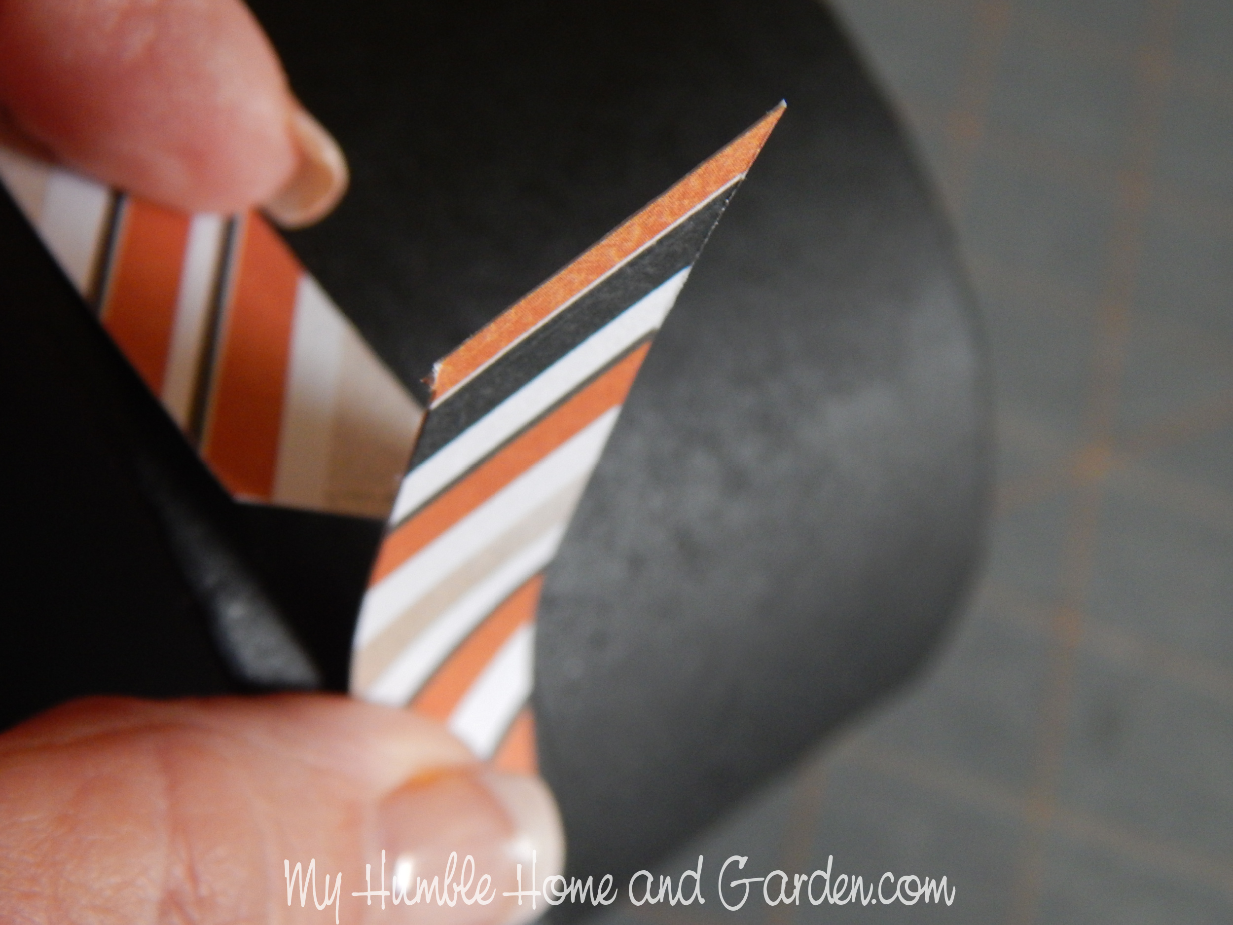 How to Decorate a Vintage Halloween Box – Cut off the excess paper strip. #Halloweendecor #halloweenbox #vintagehalloween #vintagehalloweendecorations