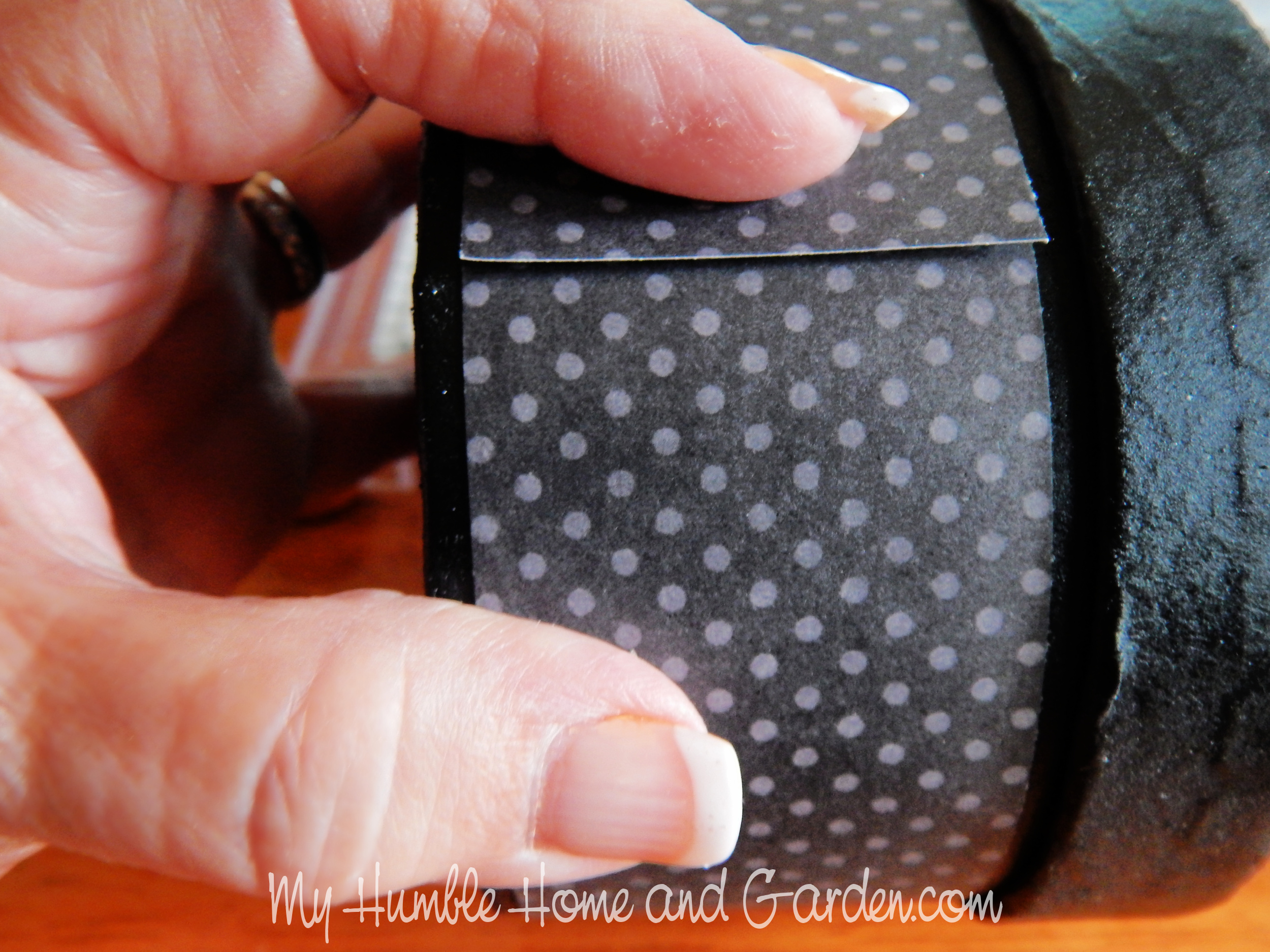 How to Decorate a Vintage Halloween Box – Make sure the ends line up nicely. #Halloweendecor #halloweenbox #vintagehalloween #vintagehalloweendecorations