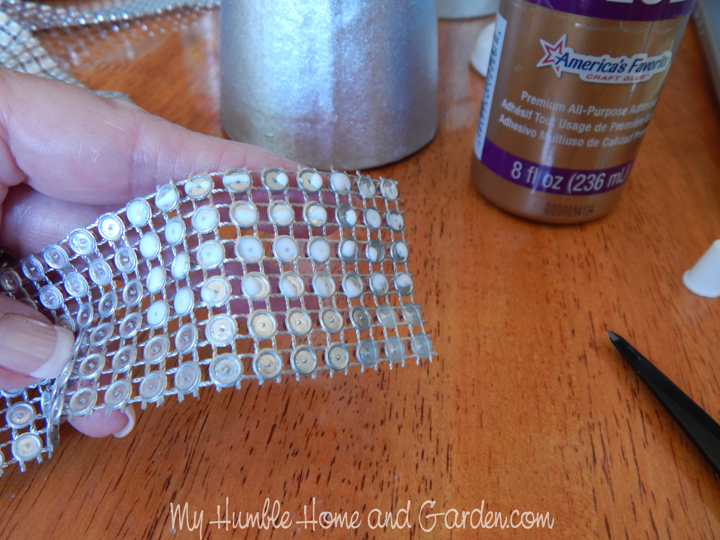Backside of the rhinestone mesh ribbon. Posted on 2024-07-272024-07-27Full size 2500 × 1875 Backside of the rhinestone mesh ribbon. How to Decorate a Beautiful Paper Mache Christmas Tree – Backside of the rhinestone mesh ribbon. #rhinestonemeshribbon