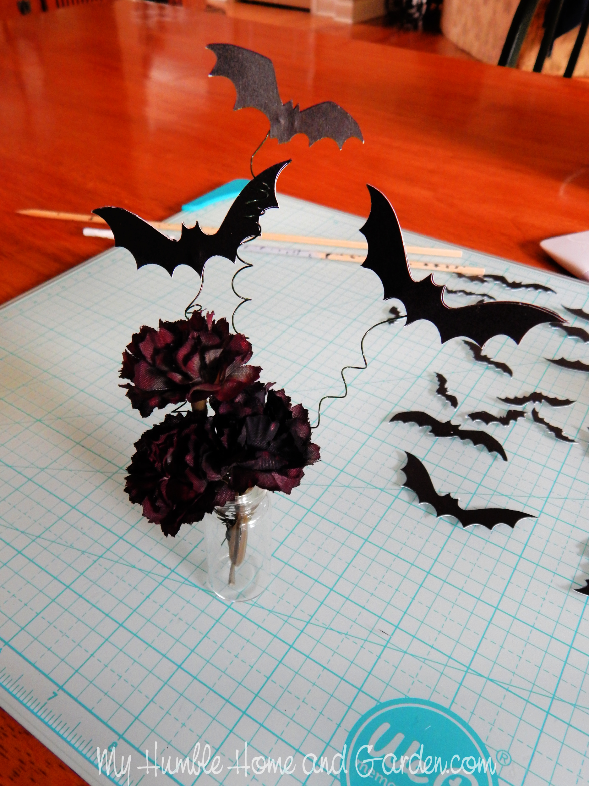 Attach the wired bats to the flower stems. Posted on 2024-08-222024-08-22Full size 1875 × 2500 Attach the wired bats to the flower stems. How to Make Vintage Wooden Block Halloween Decorations -Attach the wired bats to the flower stems.