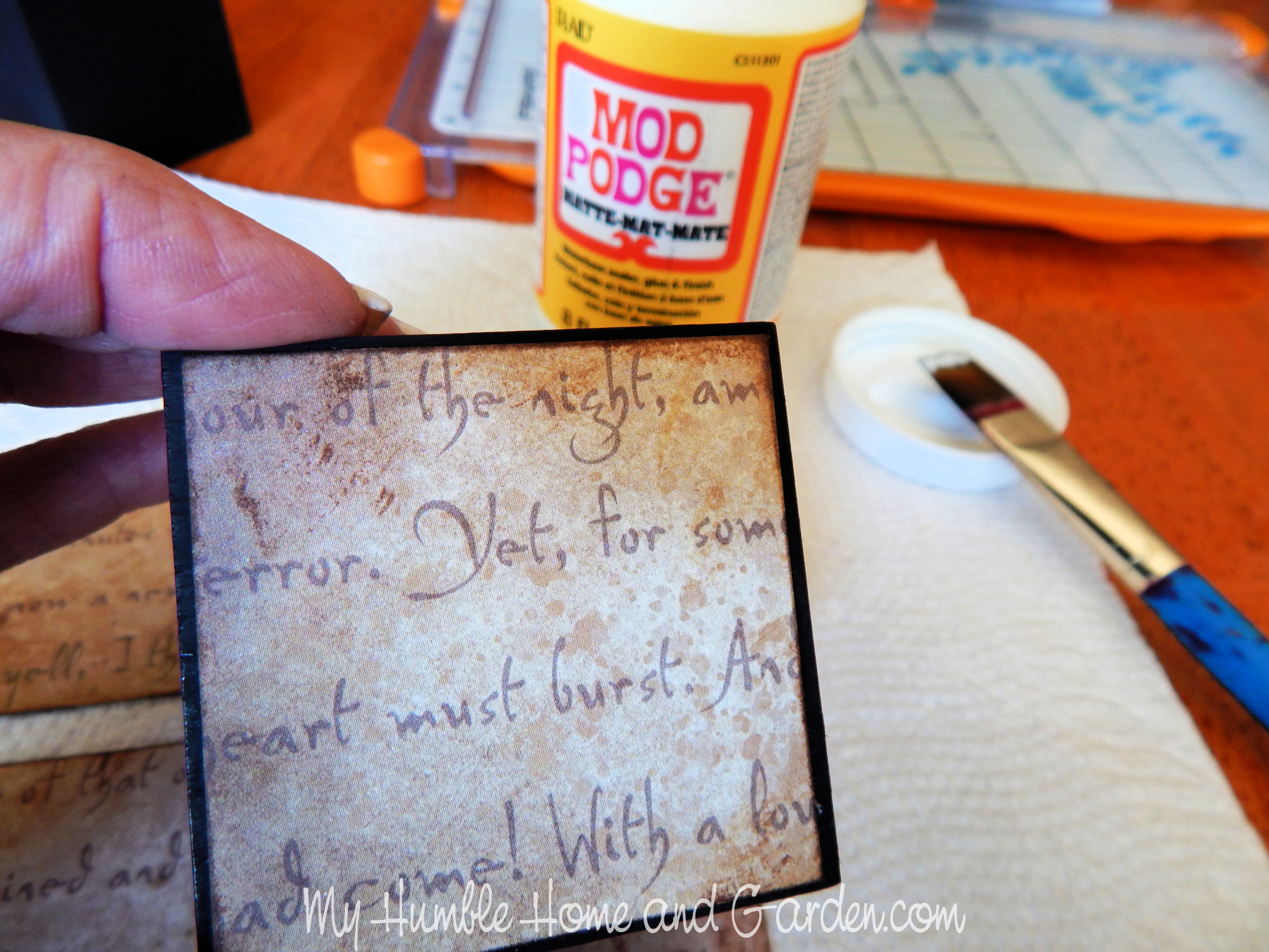 How to Make Vintage Wooden Block Halloween Decorations – Center the square on the block. #vintagewoodenblocks #woodenblocks #halloween