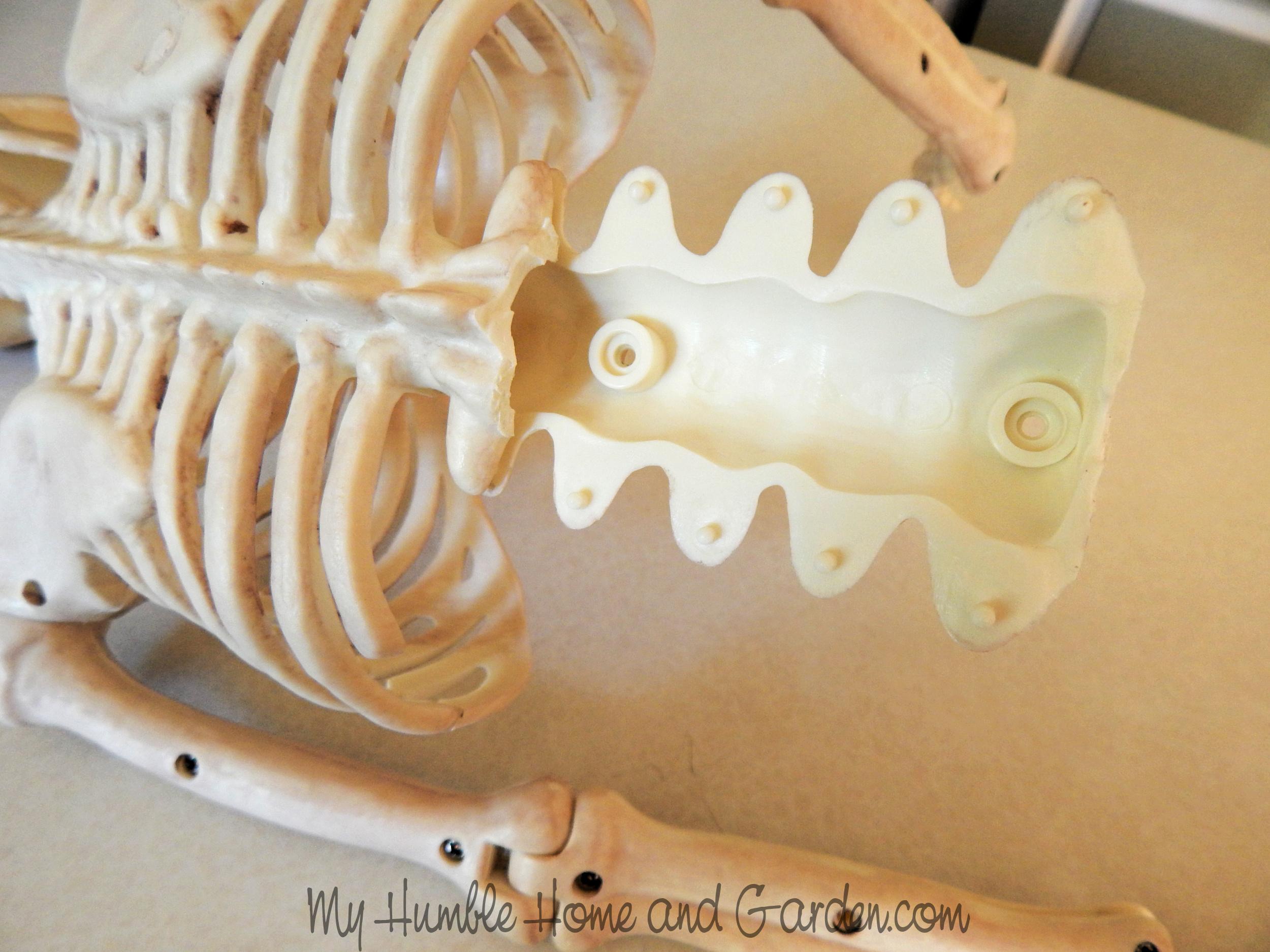 How to Make a Chic Skeleton Infinity Mirror – Remove the back piece of the spine. #infinitymirror #skeletoninfinitymirror #skeleton