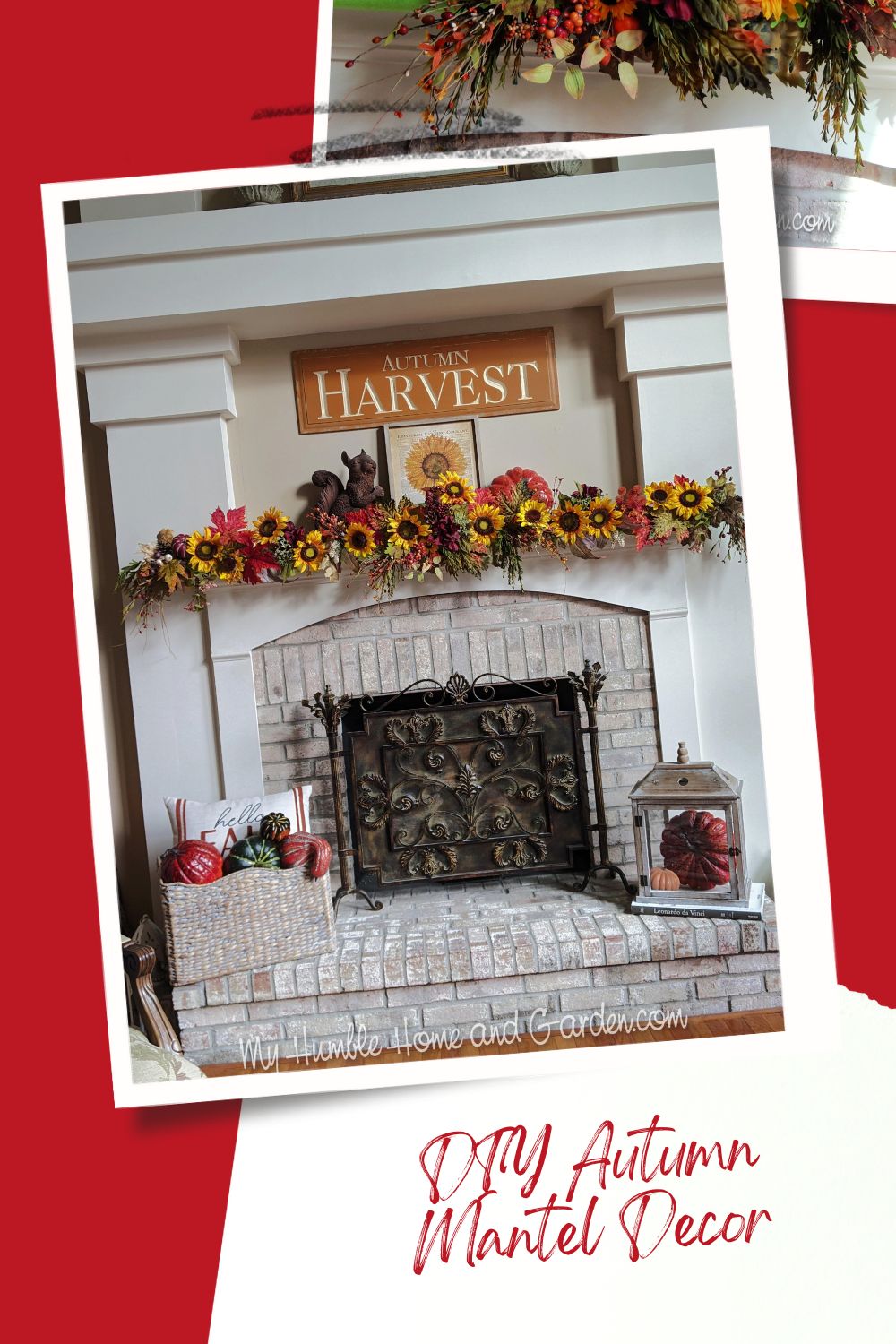 DIY Easy Autumn Mantel Decor Idea You’ll Love – Fill in with more sunflowers, greenery, and leaves. #manteldecor #manteldecoration