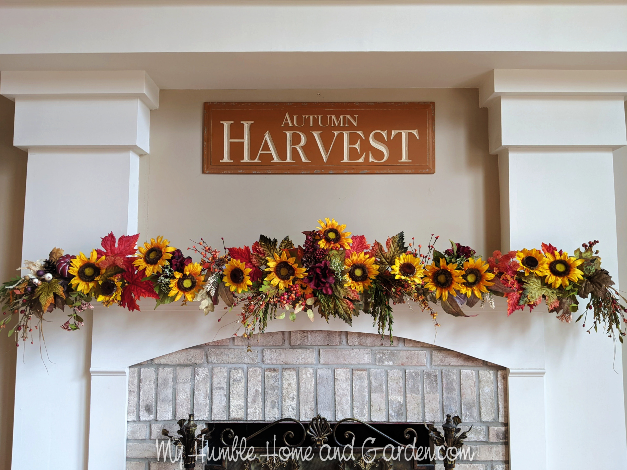 DIY Easy Autumn Mantel Decor Idea You’ll Love – Fill in with more sunflowers, greenery, and leaves. #manteldecor #manteldecoration