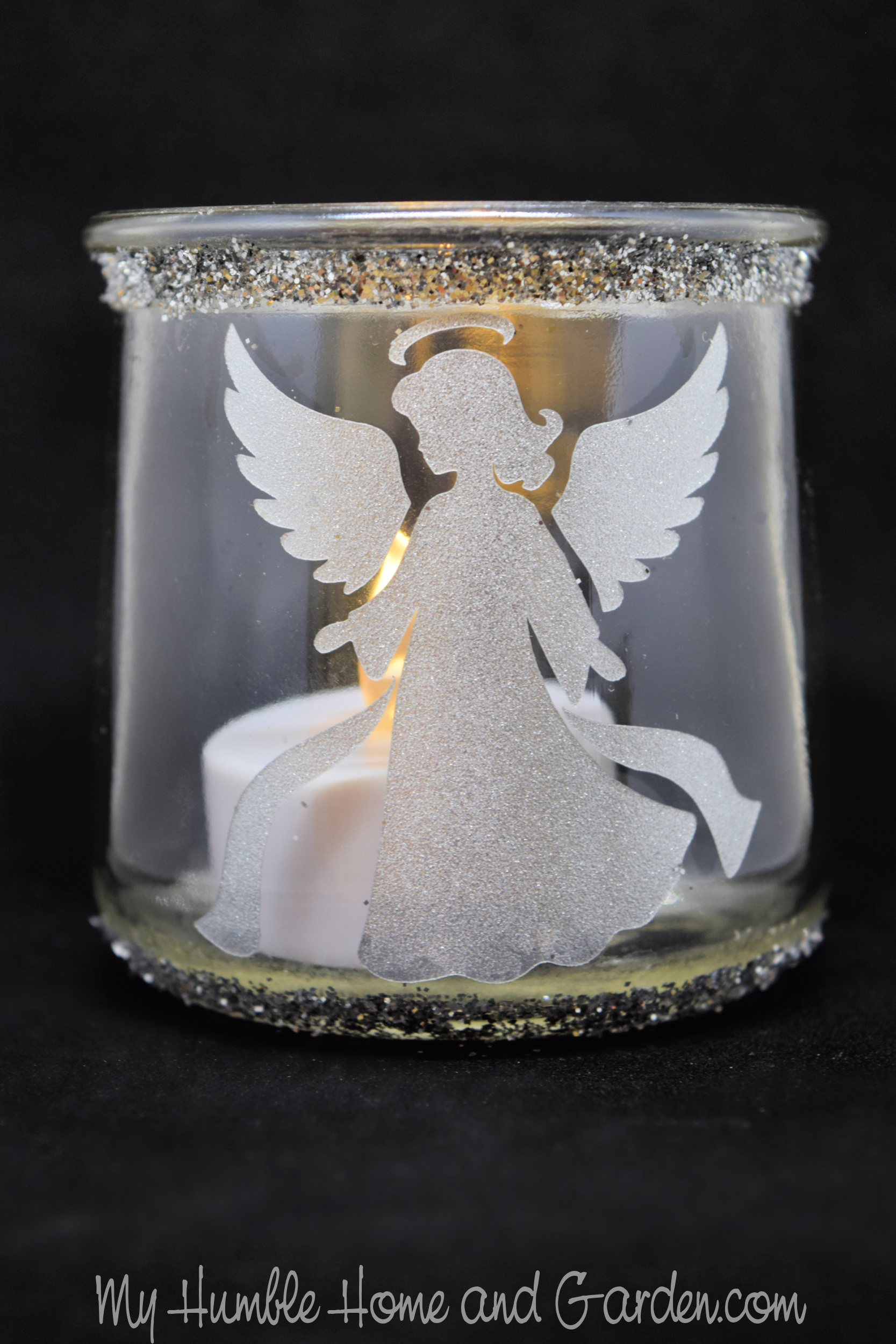 Christmas Oui Yogurt Jar Votive – How to Make Christmas Votives from French Glass Yogurt Jars – French Glass Yogurt Jars. #Christmasvotivesdiy #Frenchglassyogurtjars #Angelvotive