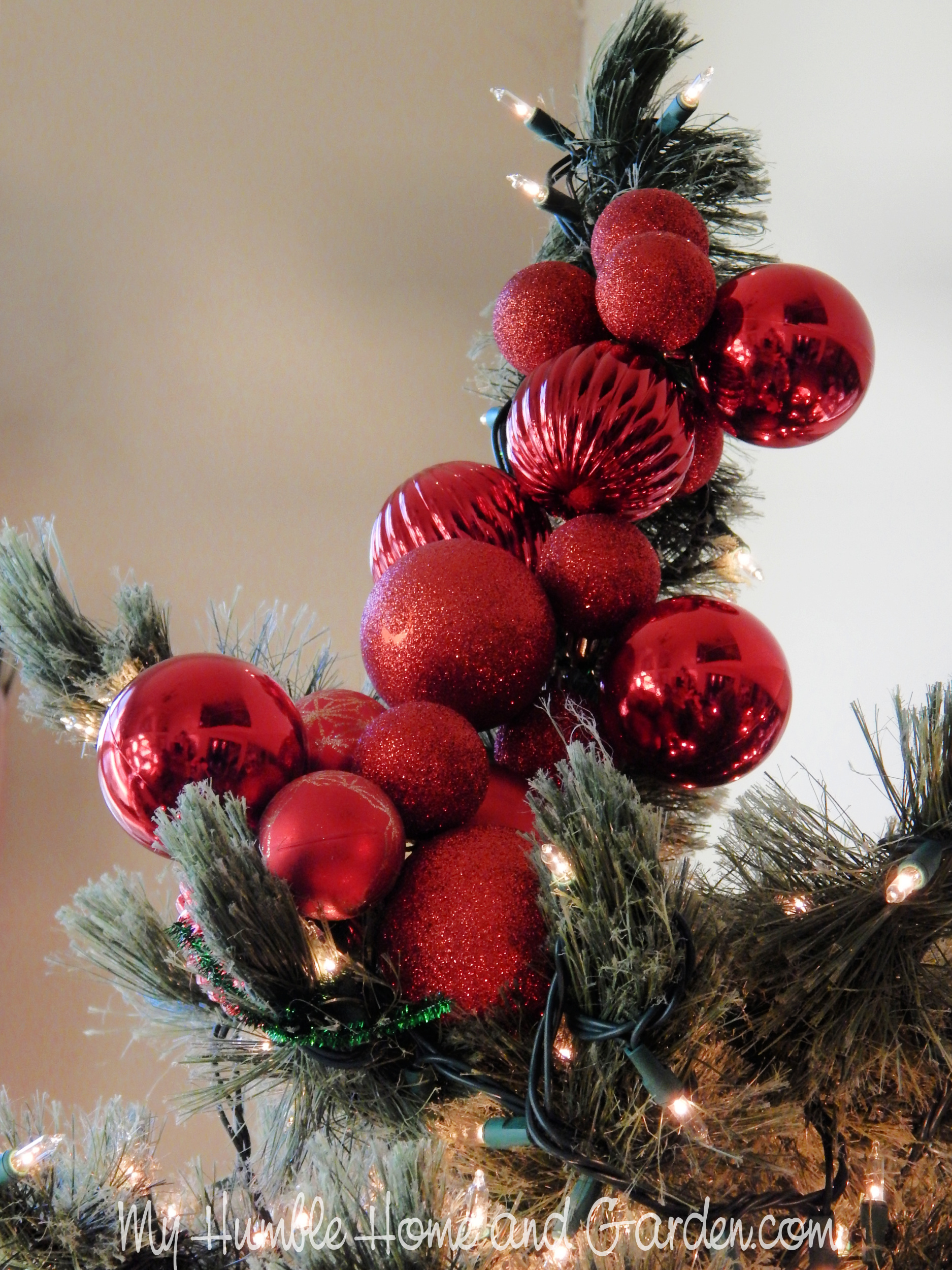 Begin the swirl with smaller ornaments at the top. – How to Make a Spiral Ornament Christmas Tree Display #ornamentspiral #Christmastreedecorations