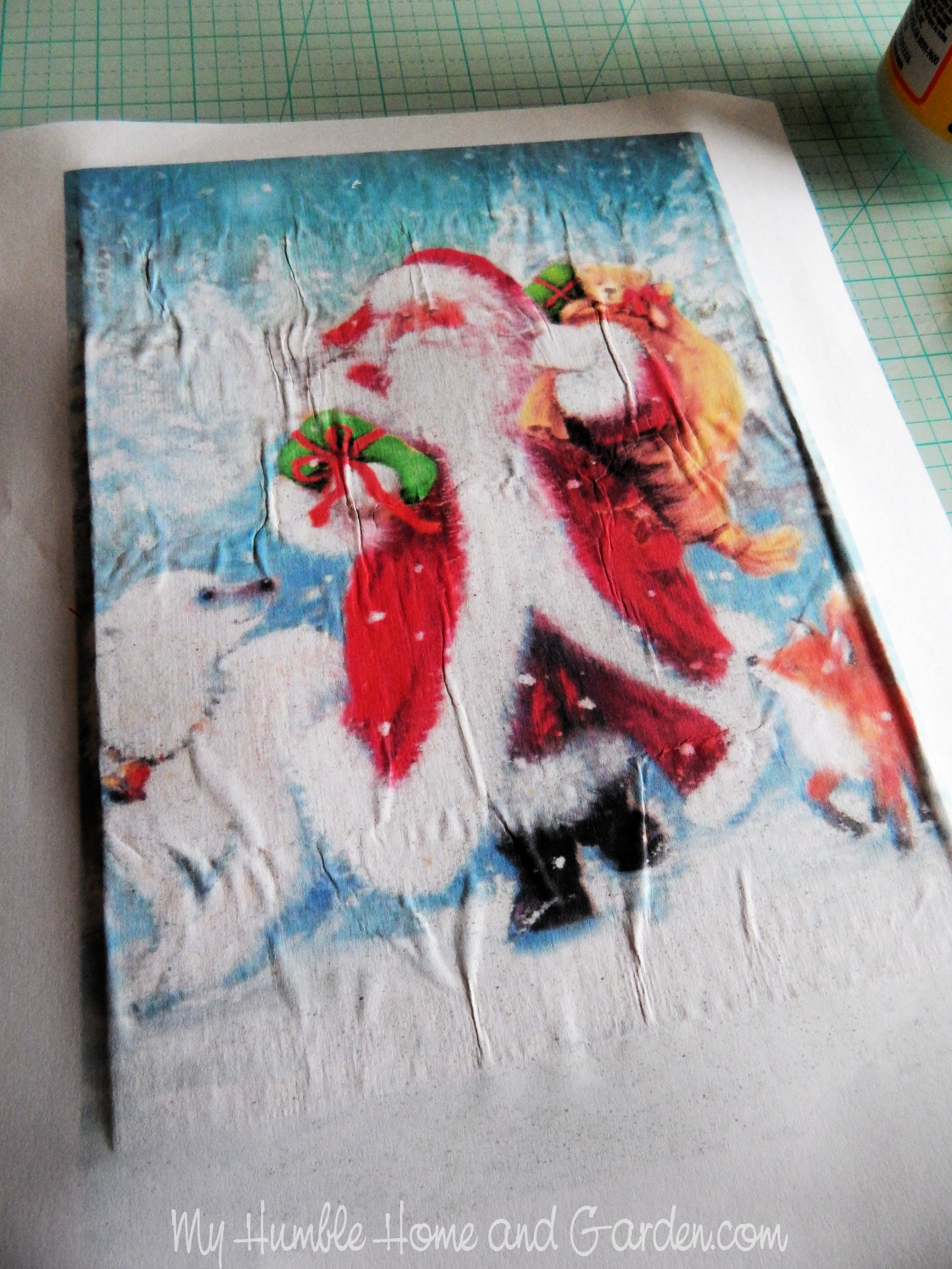 How to Make a Christmas Busted Canvas Easily – Gently press out the wrinkles with your fingertip. #bustedcanvas #explosioncanvas