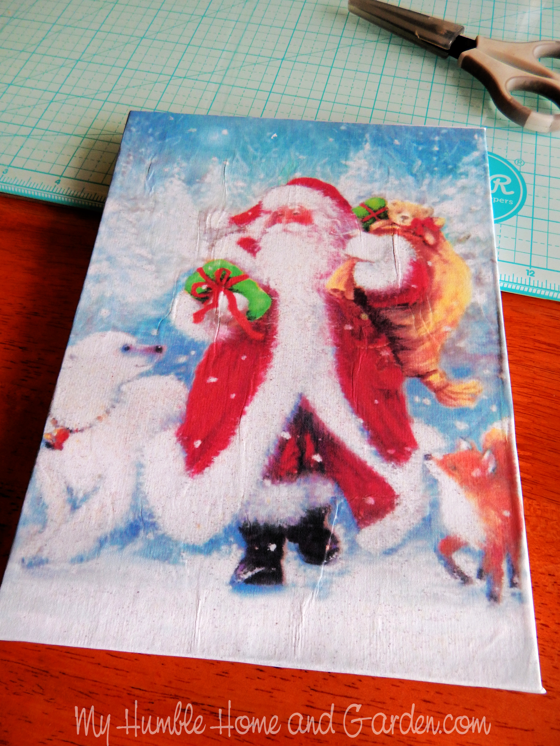 How to Make a Christmas Busted Canvas Easily – The print on canvas after the Mod Podge has dried. #bustedcanvas #explodingcanvas