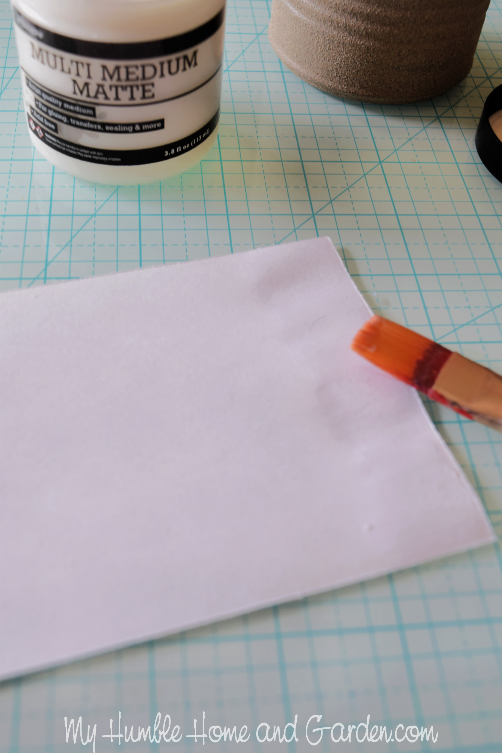 Trash to Treasure – More Craft Ideas for Tin Cans – Apply a strip of matte medium to one end of the printed paper strip. #recycle #tincan #tincancrafts