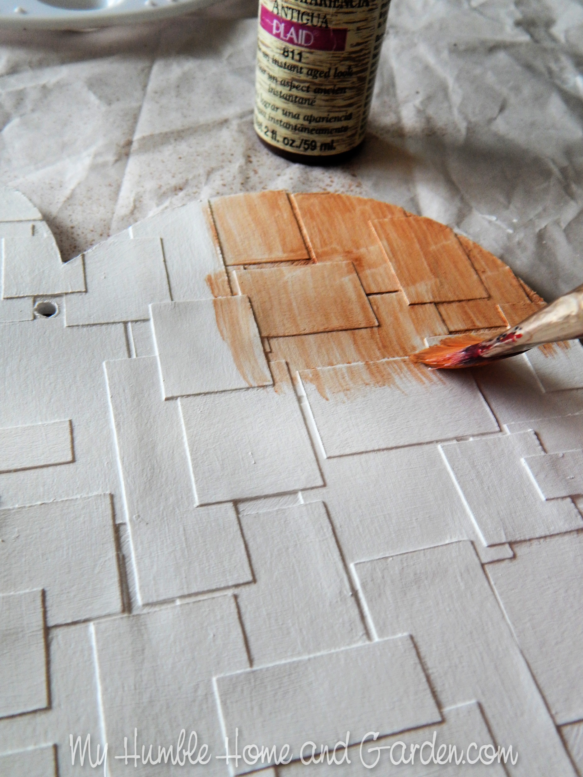 Begin painting the antiquing medium onto the heart.
