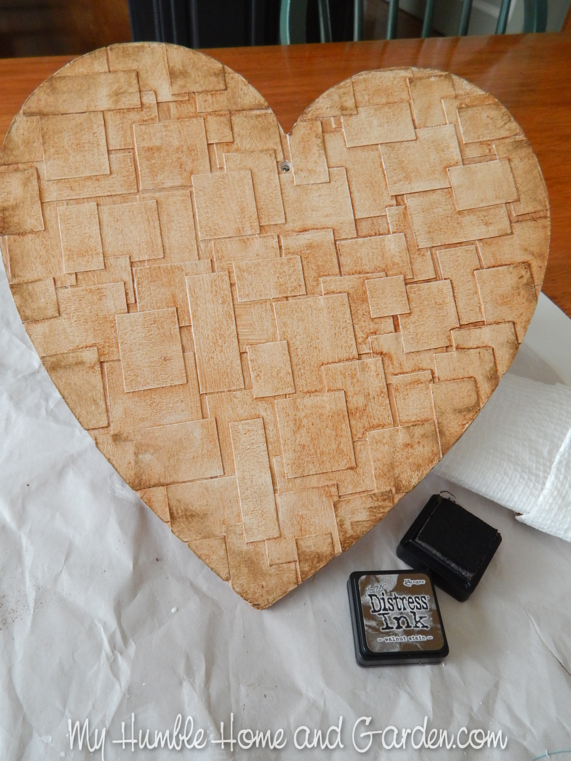 Use Distress Ink pad to antique the outer edges of the heart. Wooden Hearts Craft Ideas You’ll Want to Make Now! #woodenheartscrafts #woodenhearts