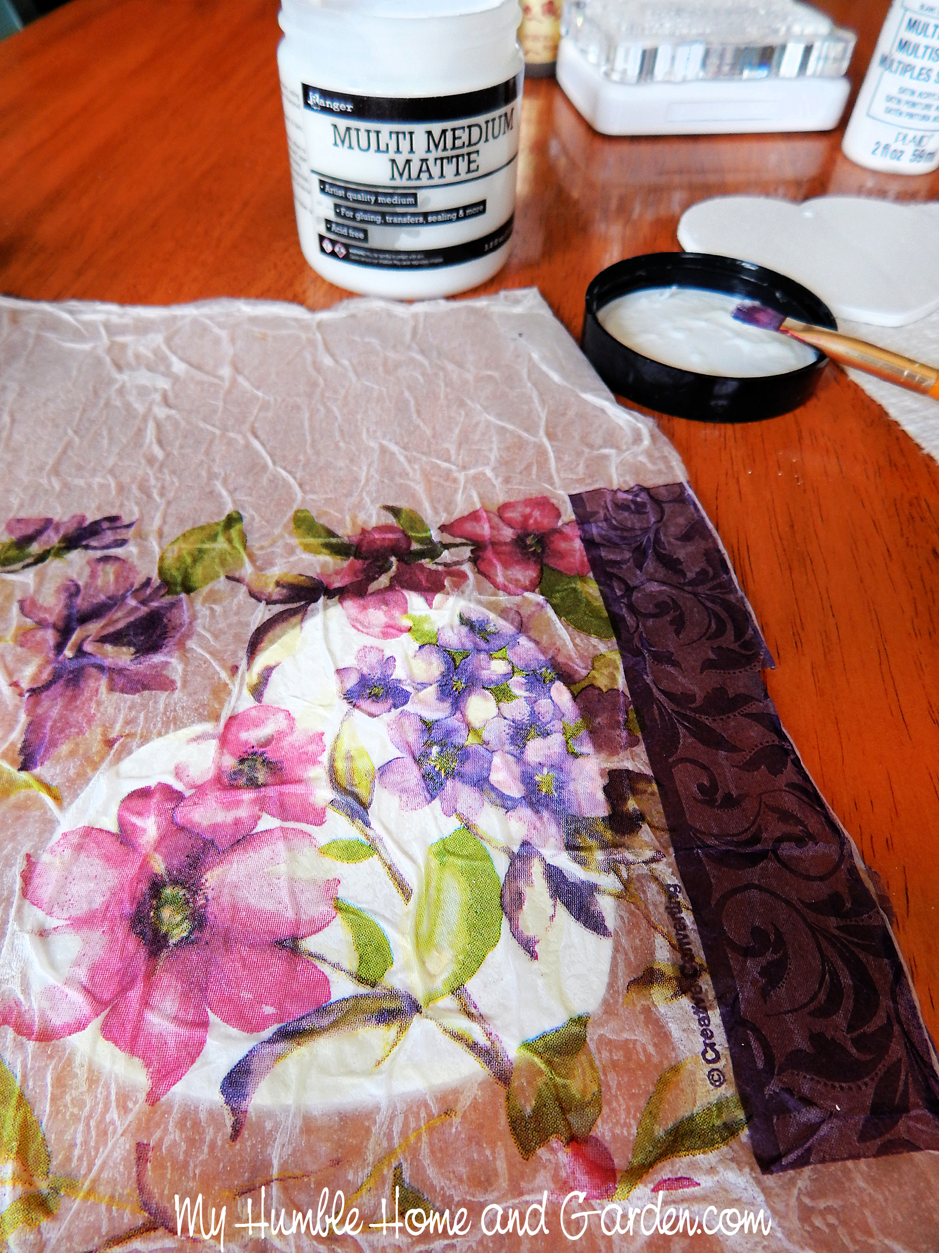 Adhere the faux rice paper to the heart with Multi Medium Matte. Decorated Wooden Hearts They’ll Love – Stamp, Emboss, and Decoupage