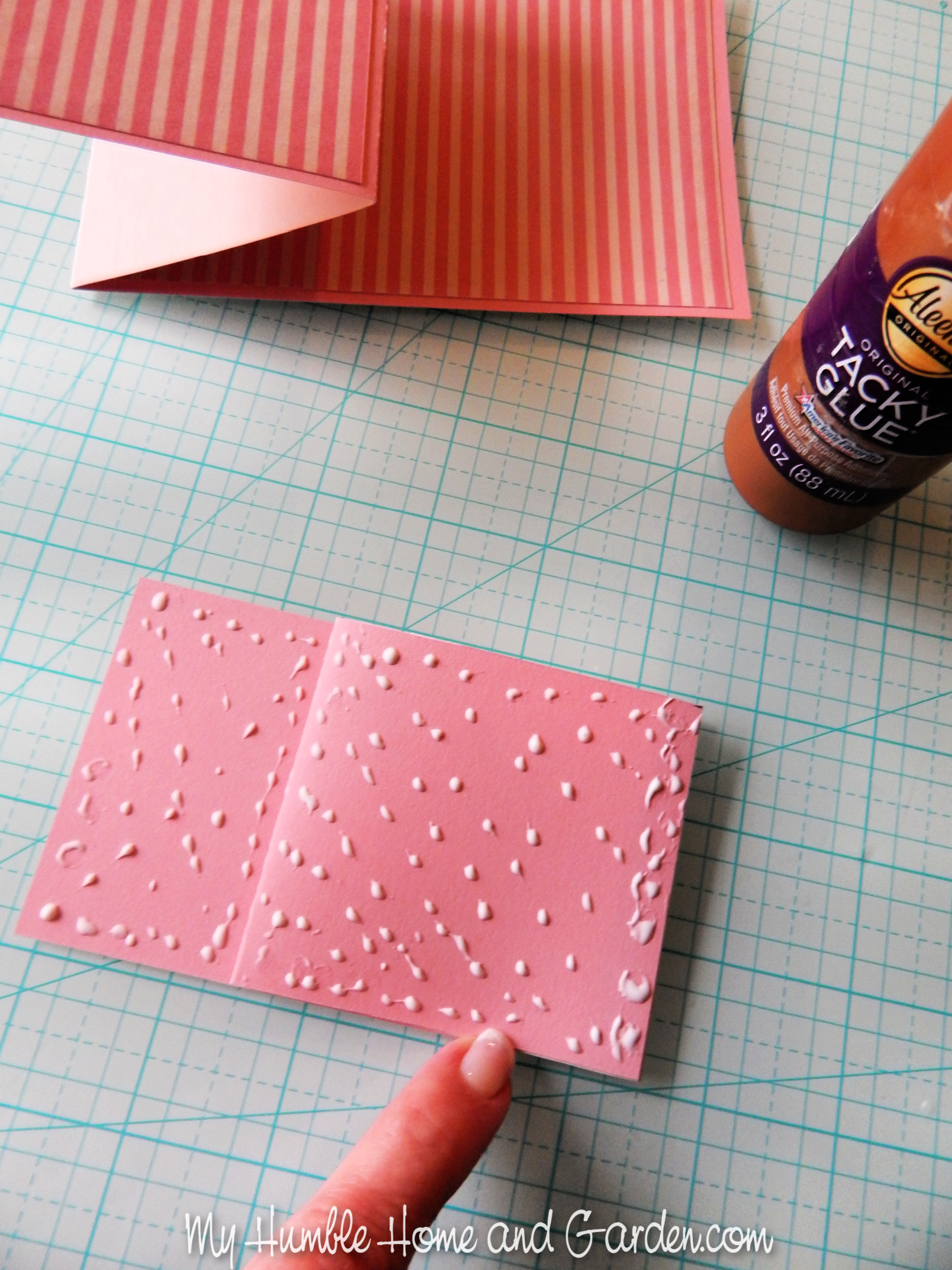 Apply glue to the back of the folded piece. How to Make a Mother’s Day Center Z-Fold Card #zfoldcard #mothersdaycard #papercrafts
