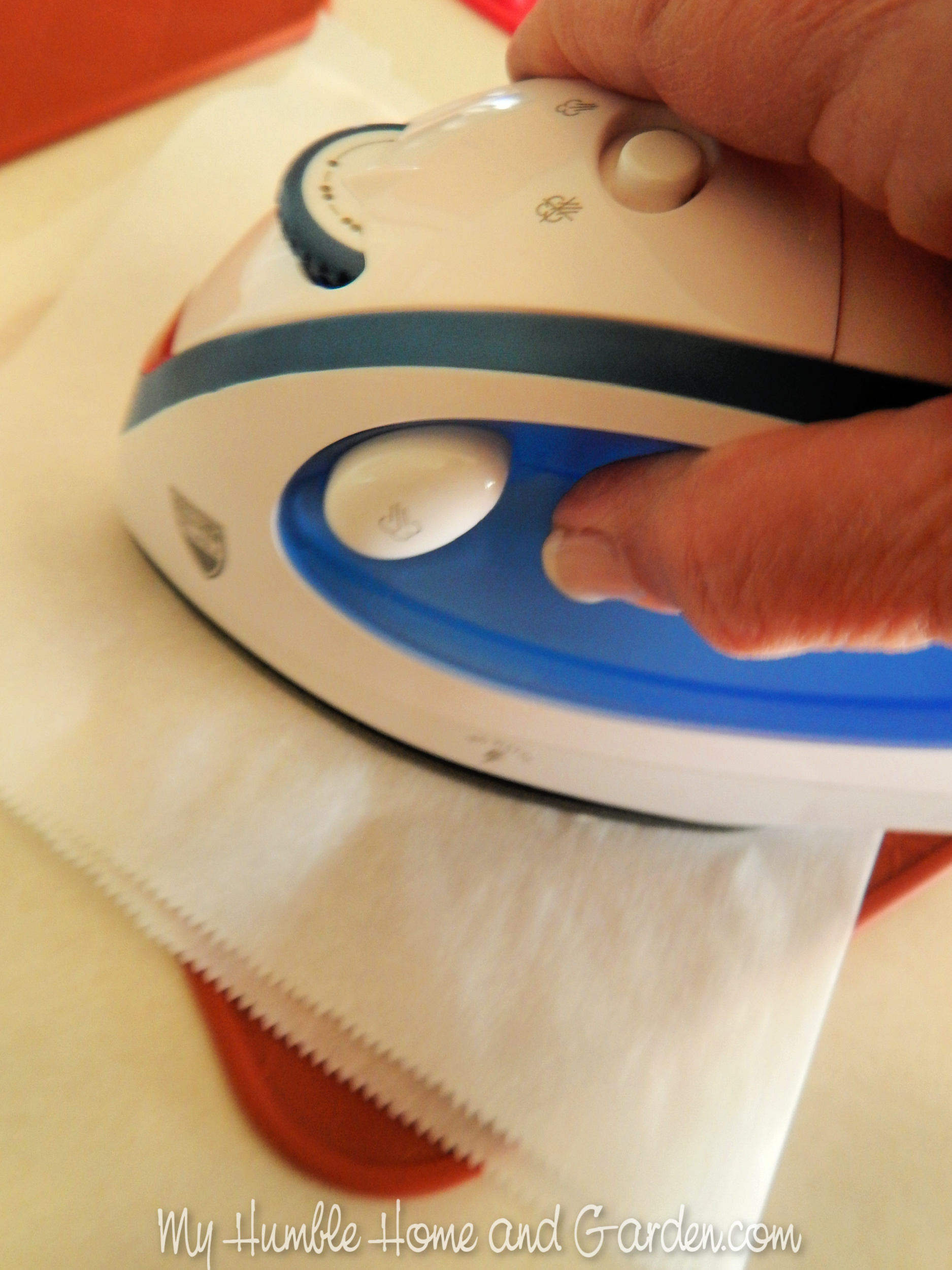 Apply heat to the area with the napkin cutout. How to Decoupage and Crackle Paint a Wooden Chick and Bunny. #cracklepaint #decoupage
