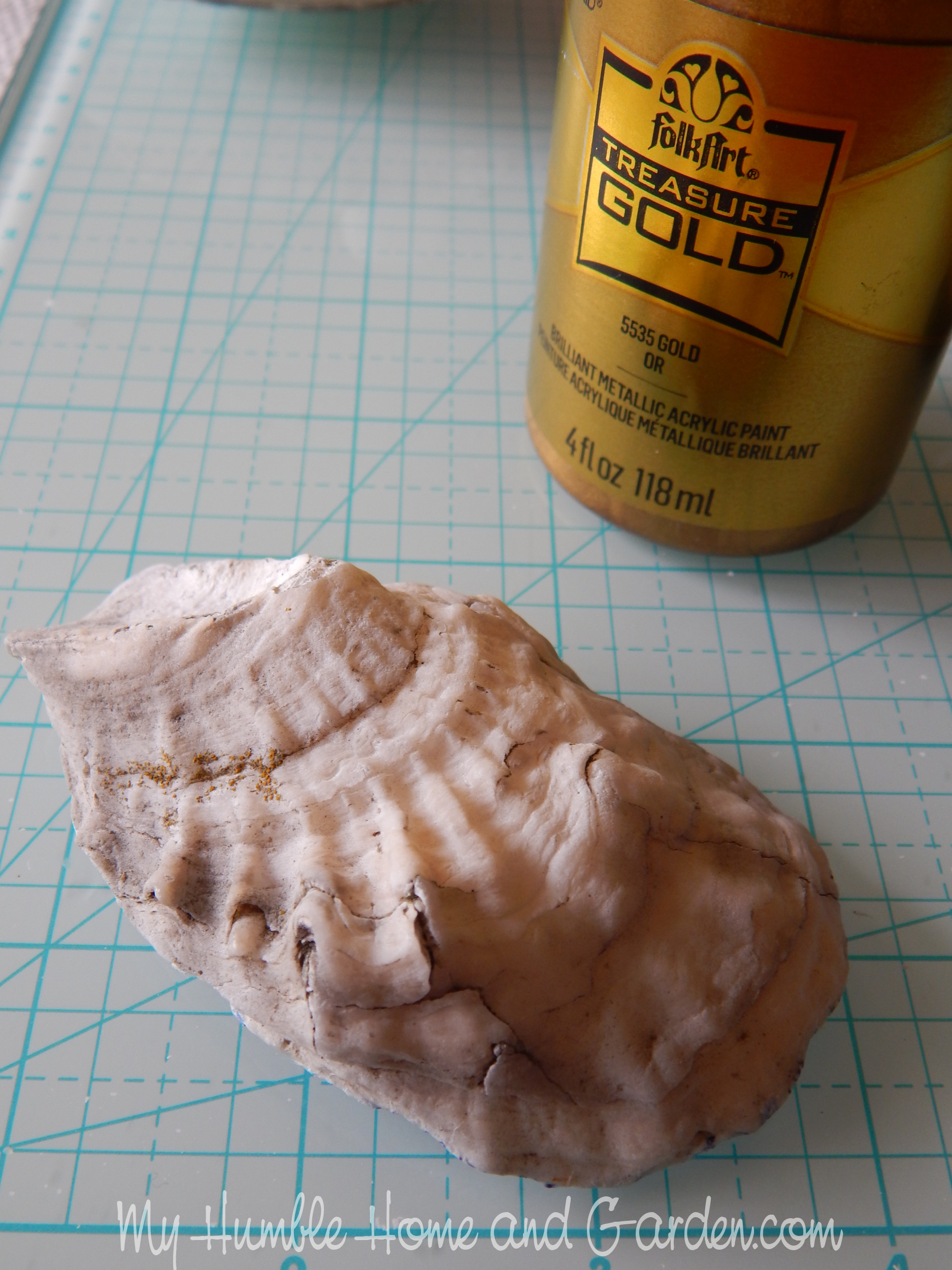 Apply gold paint around the outside edge. You can choose to paint the outside of the shells or leave them as is. Some of these are too pretty to cover with paint.