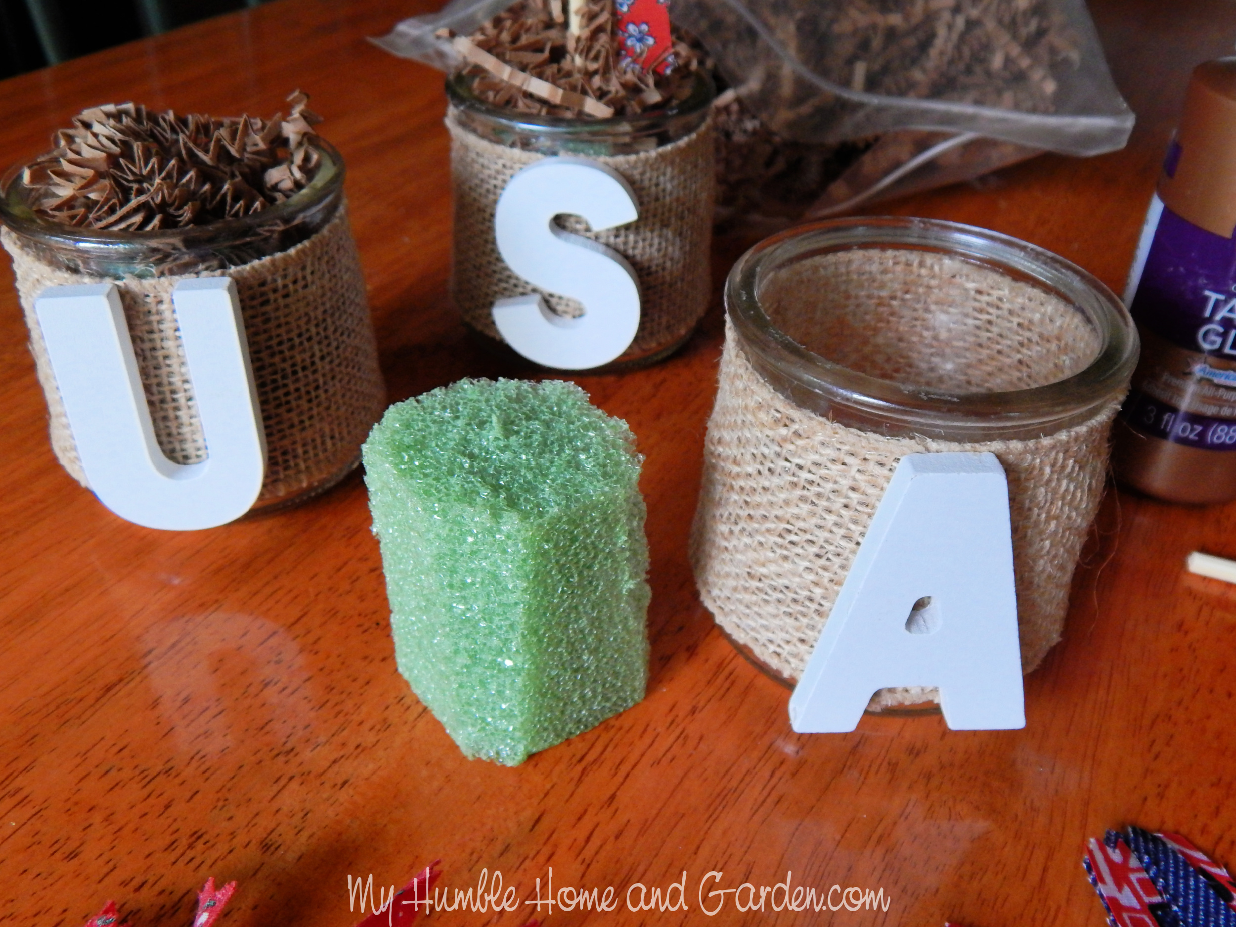 Cut the foam to fit inside the Oui jar. How to Make Patriotic Fabric Ring Flowers in a Oui Jar. #ouijar #fabricringflowers #fabricflowers