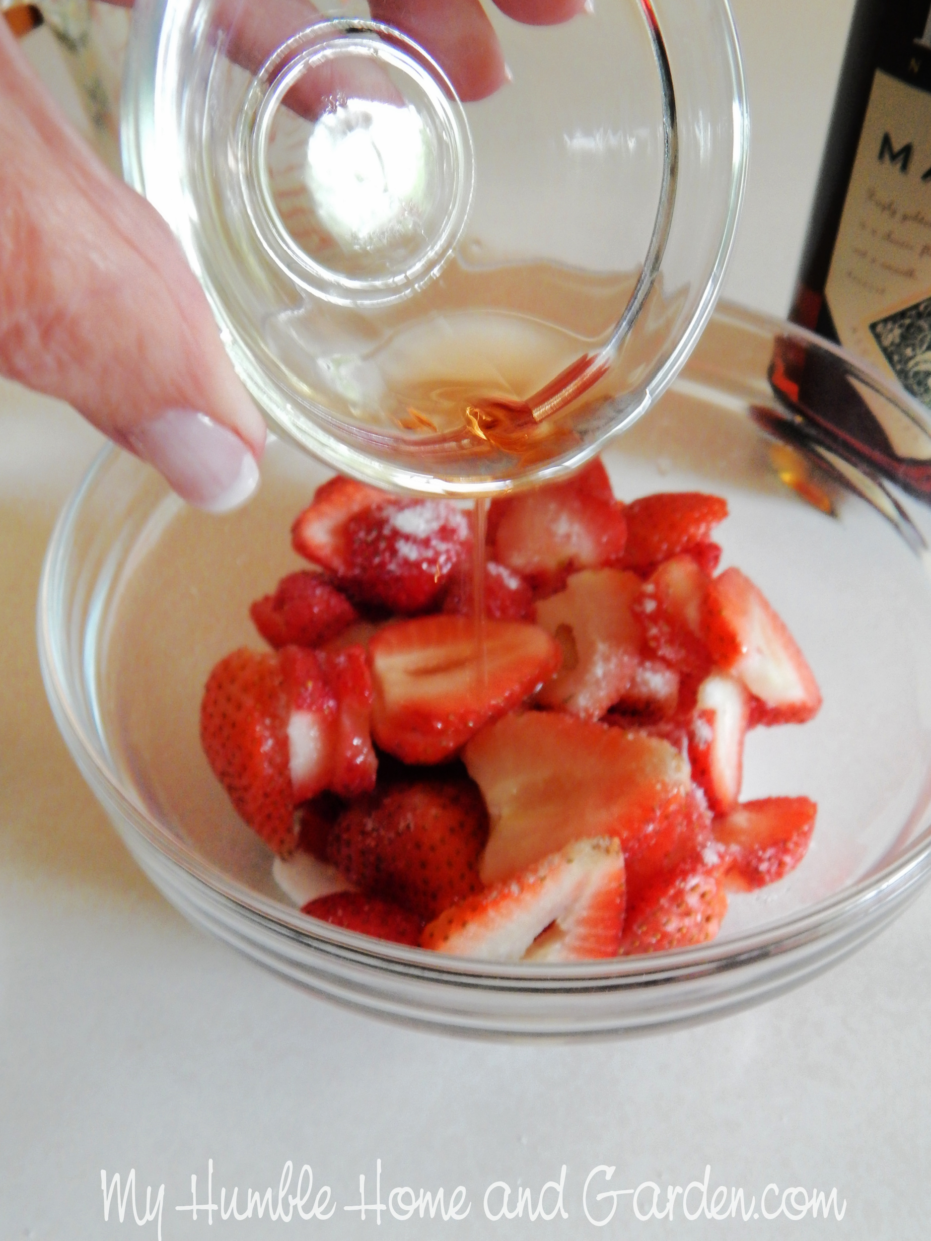 Pour the Marsala over the strawberries.