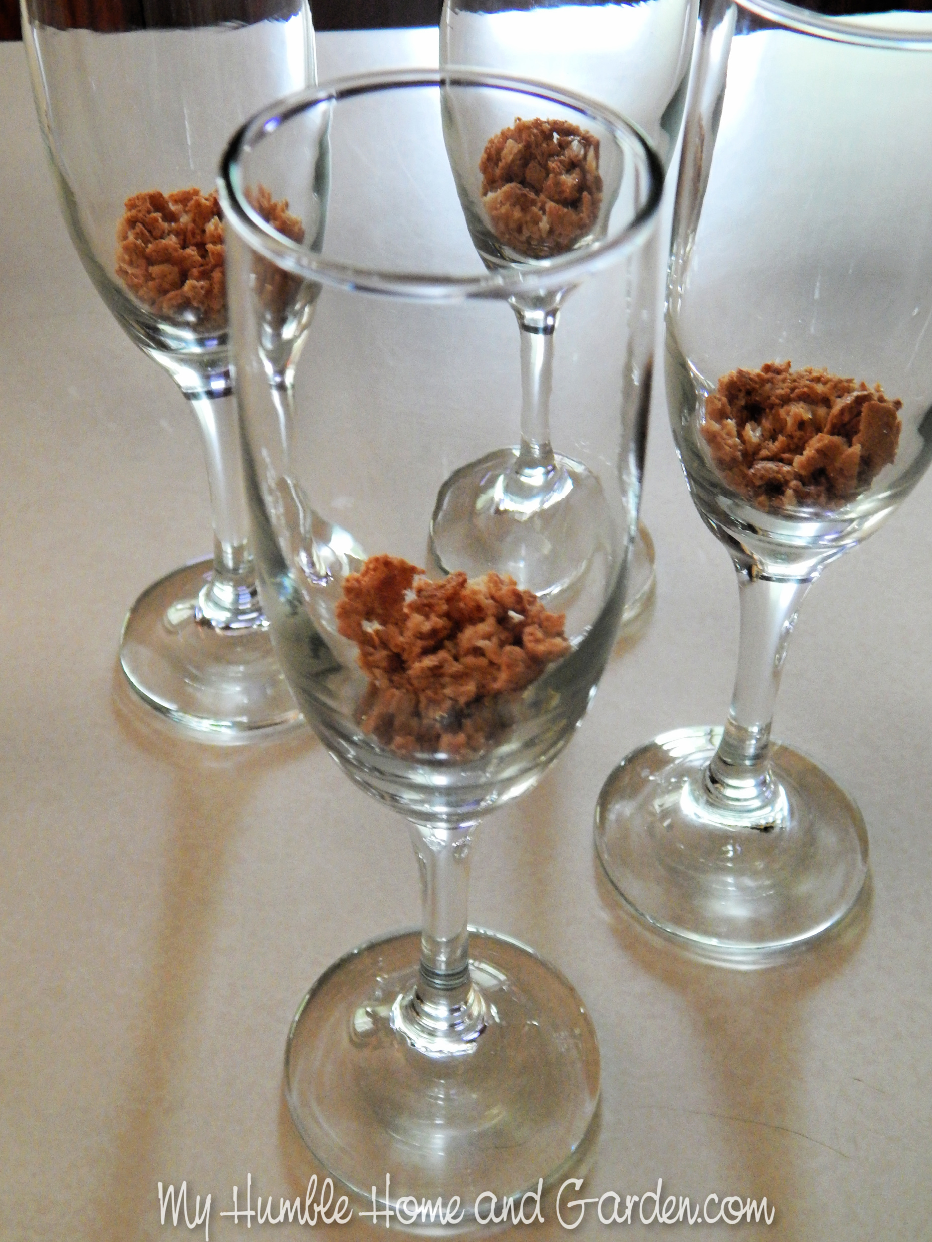 Spoon the cookie crumble into the champagne flutes. White Chocolate Champagne Cheesecake Mini Desserts You’ll Love #whitechocolatechampagnecheesecake #minidesserts #desserts
