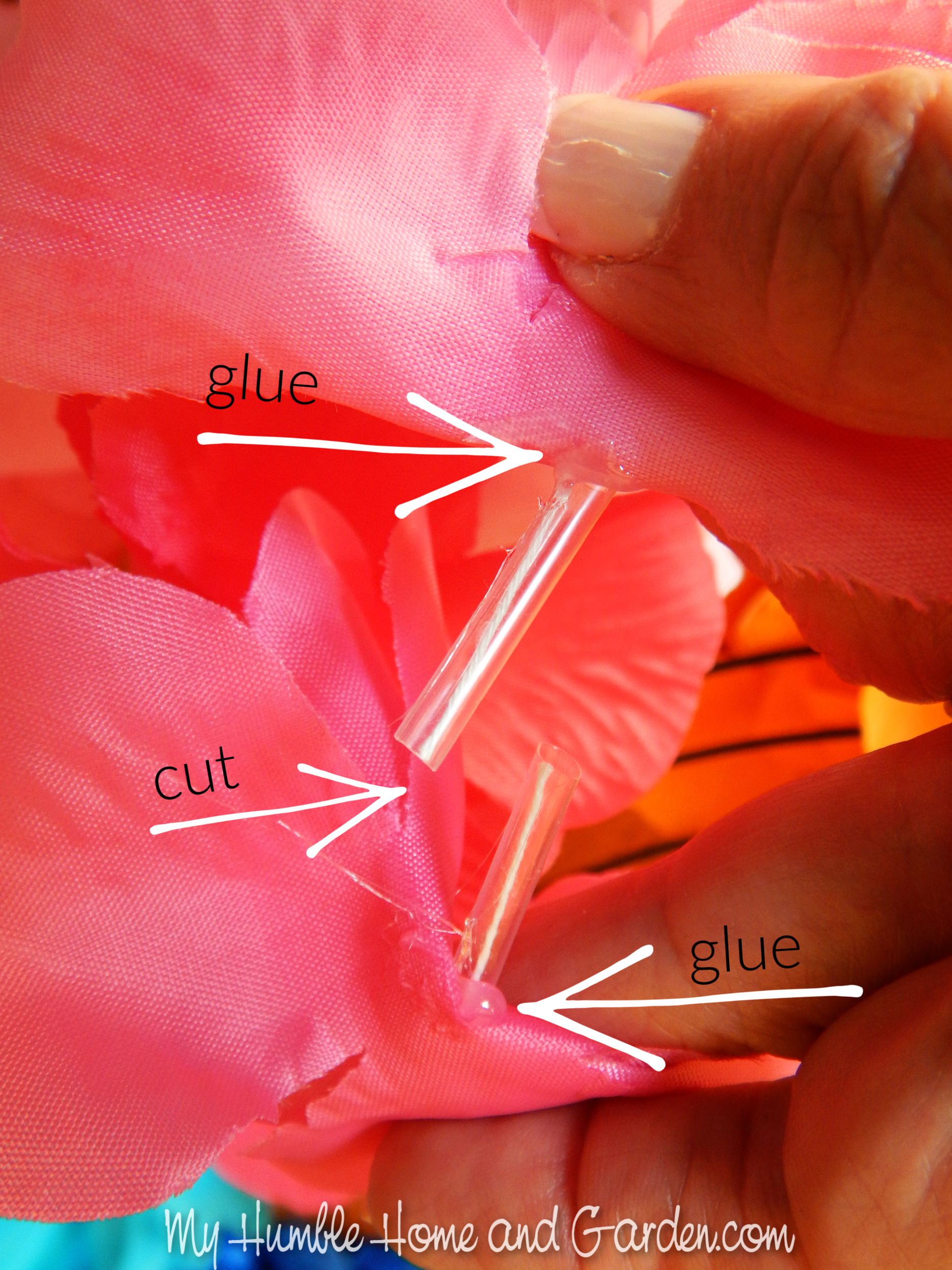 Apply glue to the string and tube at both ends. Cut the tube in the middle. How to Make a Fun Flamingo Wreath #flamingo #flamingowreath #luaupartydecor