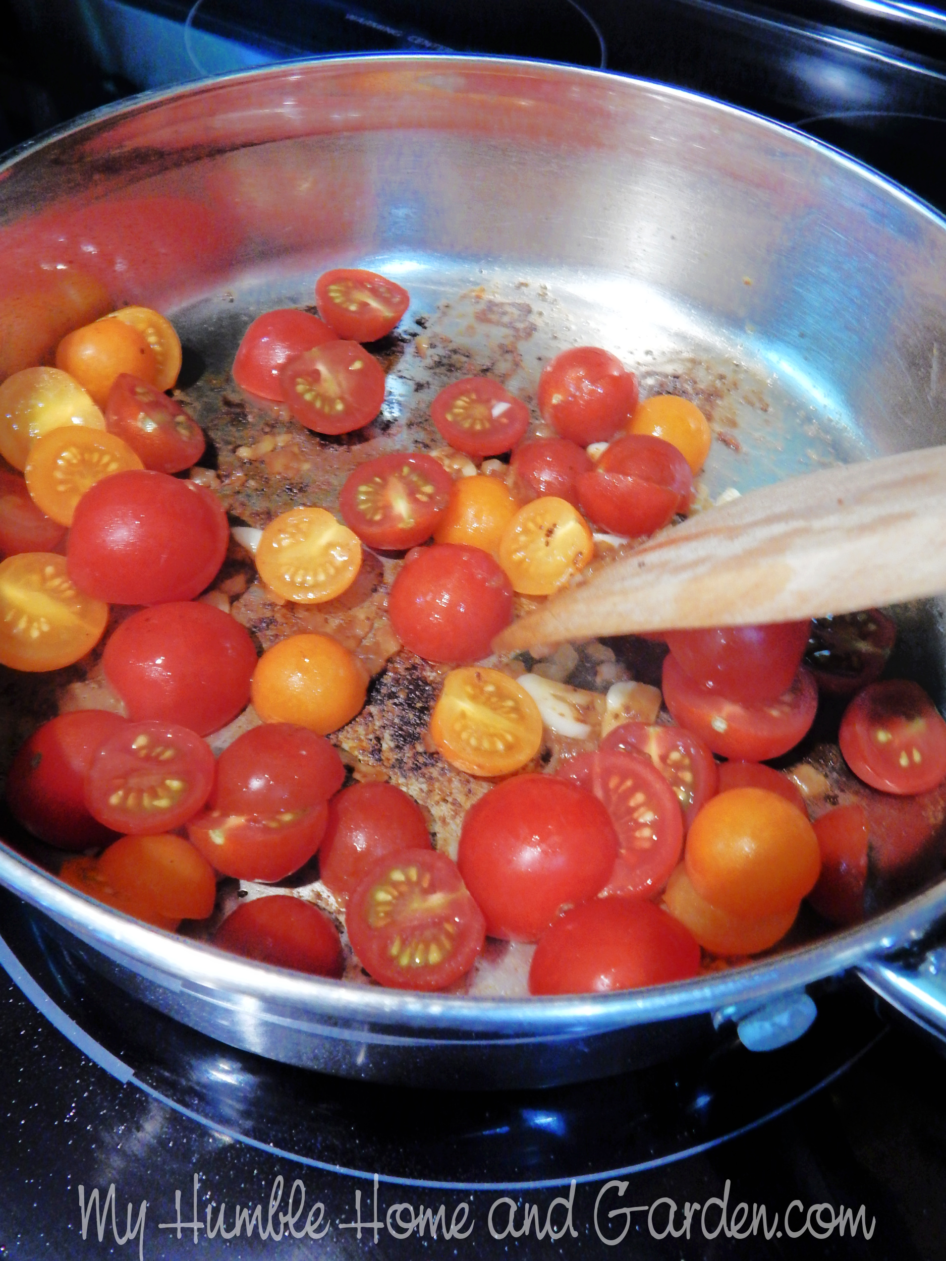 Add the tomatoes and season with salt. Old Bay Shrimp Pasta – An Easy Dinner You’ll Love #shrimp #shrimpentree #shrimpmaindish #oldbay #oldbayshrimp
