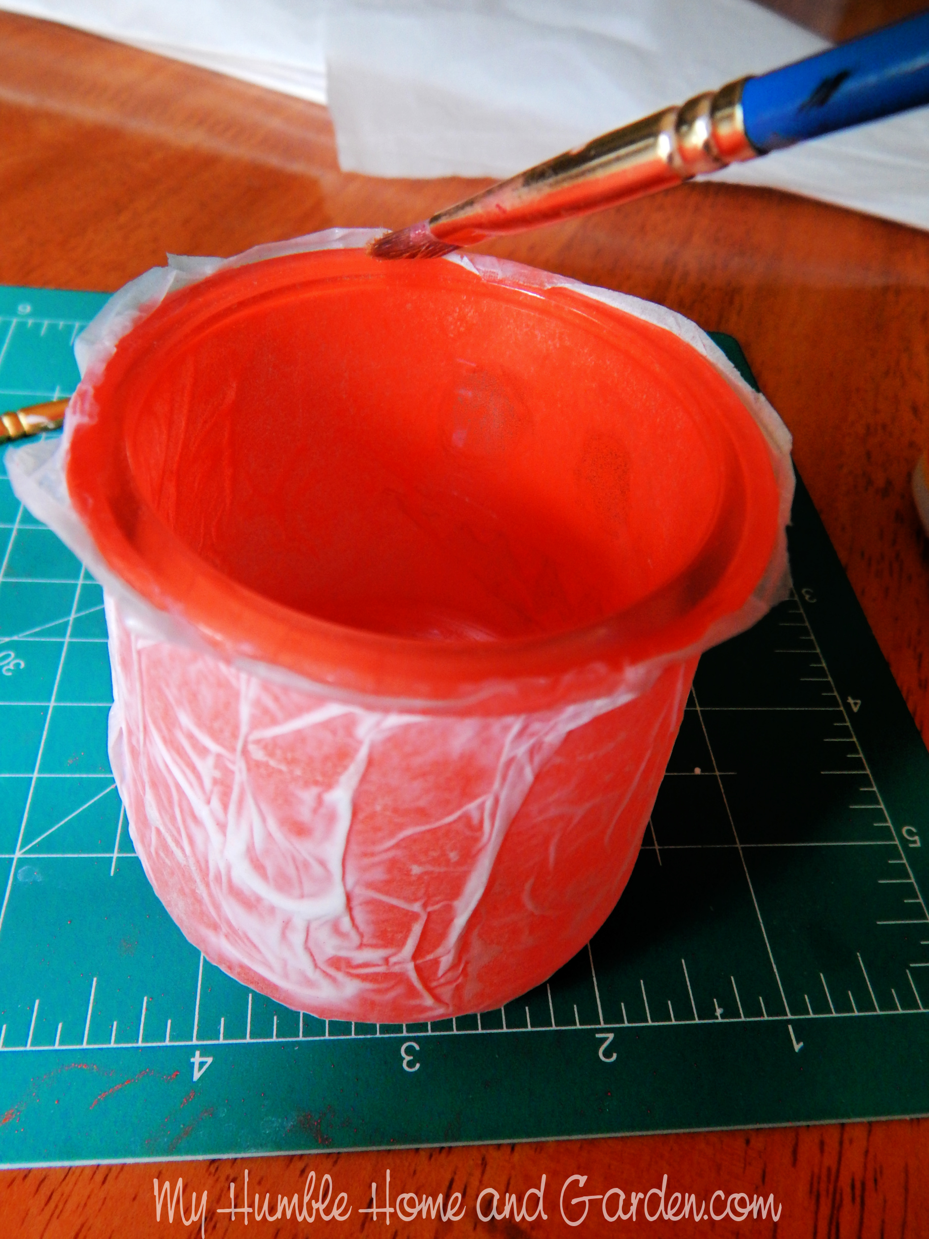 Use a flat paintbrush to push the edge off of the rim. How to Make DIY Creepy Oui Jar Lanterns #diycreepyouijarlanterns #ouijarcrafts