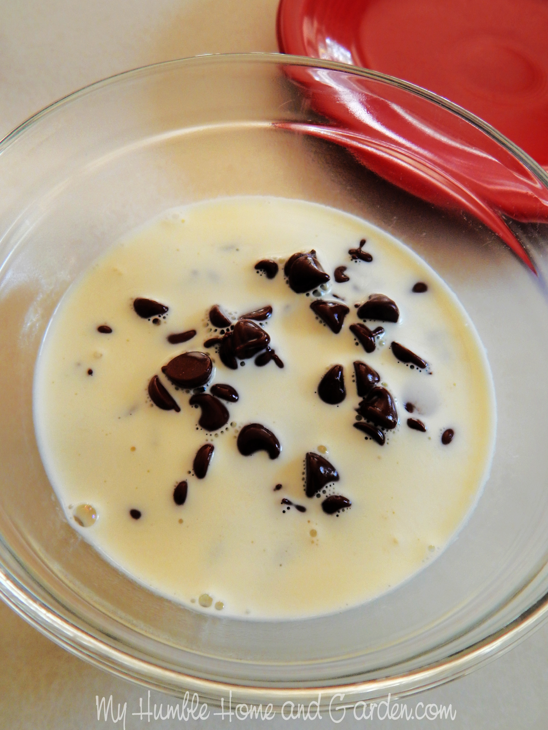 Pour the hot cream over the chocolate chips. Boston Cream Pie Mini Desserts – Easy to Make #minidesserts #bostoncreampieminidesserts