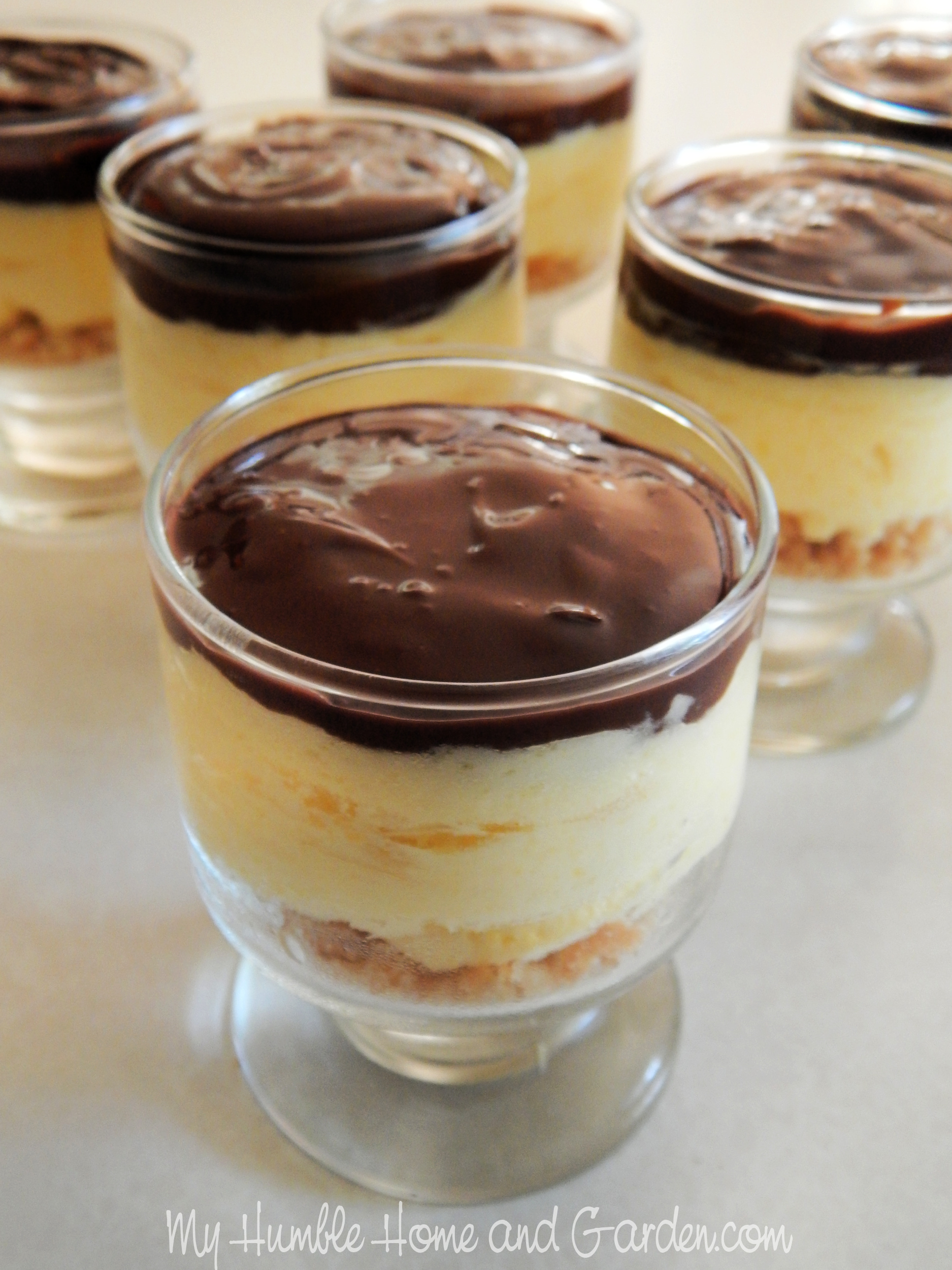 Spoon chocolate ganache over the chilled vanilla mixture. Boston Cream Pie Mini Desserts – Easy to Make #minidesserts #bostoncreampieminidesserts