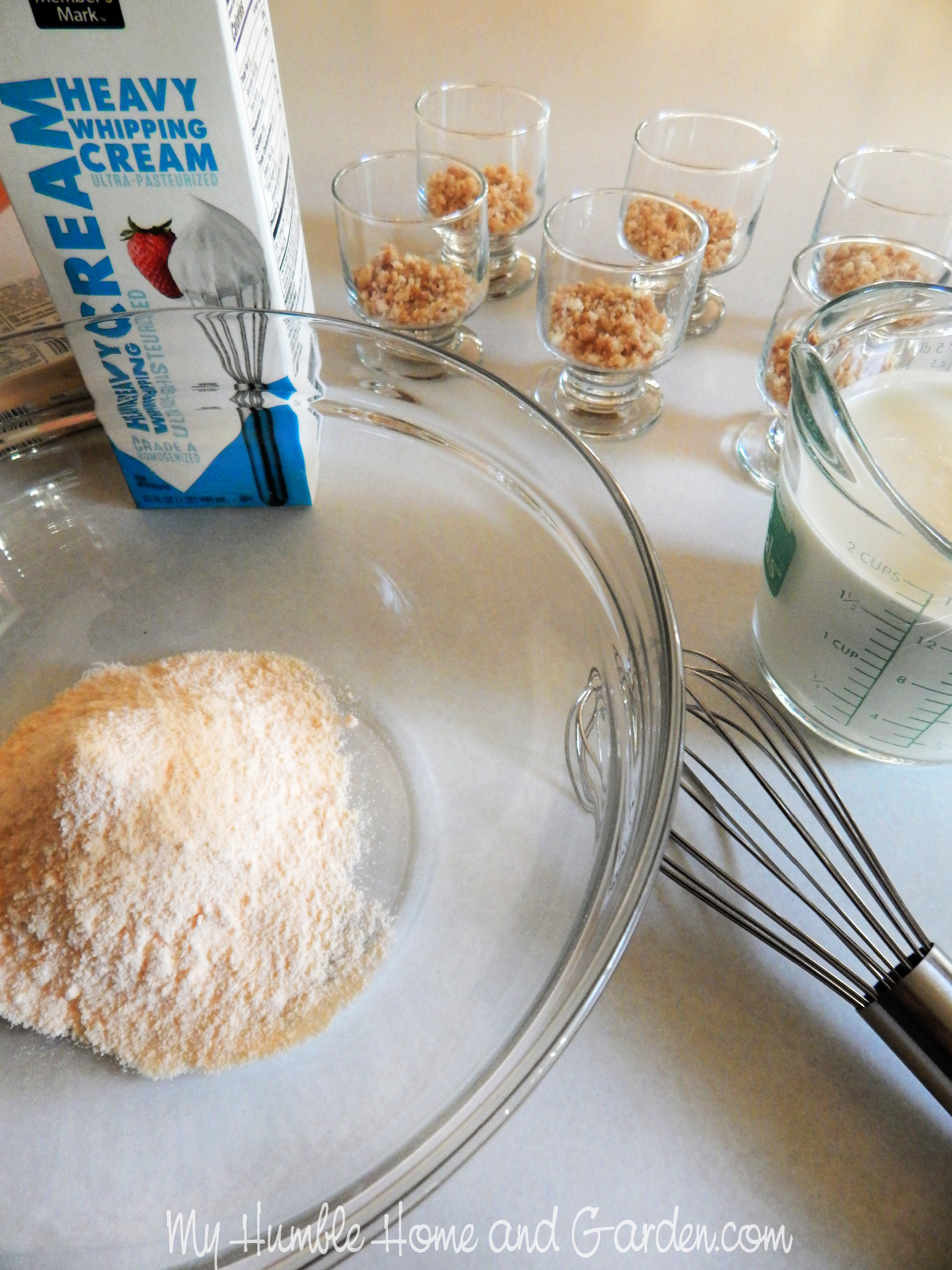 Vanilla pudding mix and heavy whipping cream.. Boston Cream Pie Mini Desserts – Easy to Make #bostoncreampiedessert #minidessert