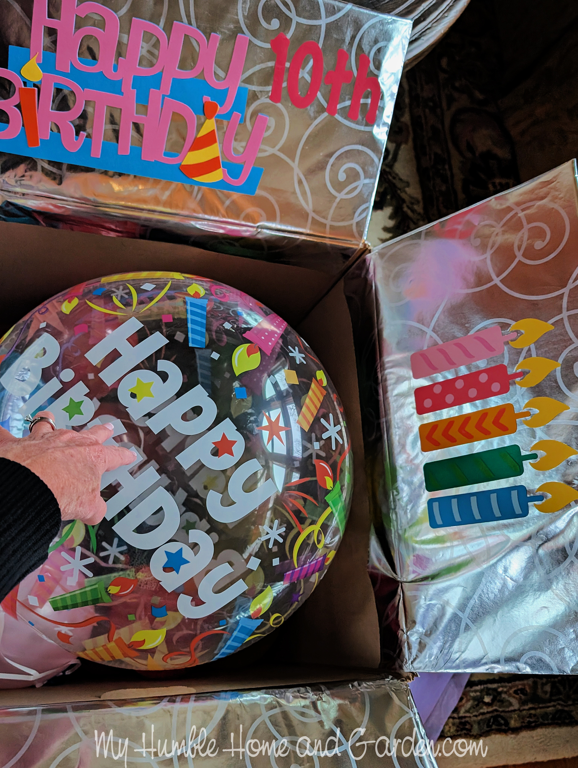 Lay the helium-filled balloon on top. Balloons and Paper Money How to Gift Money – Fun Ways to Give Money Gifts #birthdayballoon pop #moneygifts #howtogiftmoney