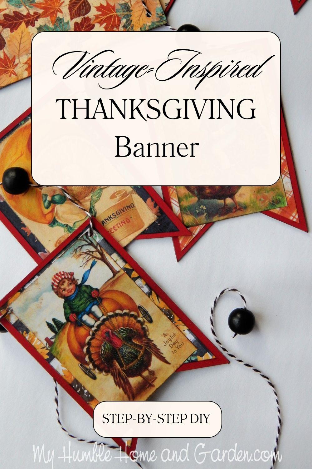 In the kitchen window, we’ve displayed a “Welcome to Our Home” sign and the vintage-inspired Thanksgiving banner I made a few years ago. Sitting on the window ledge are two carved black crows on pumpkins and a “Happy Harvest” sign.
