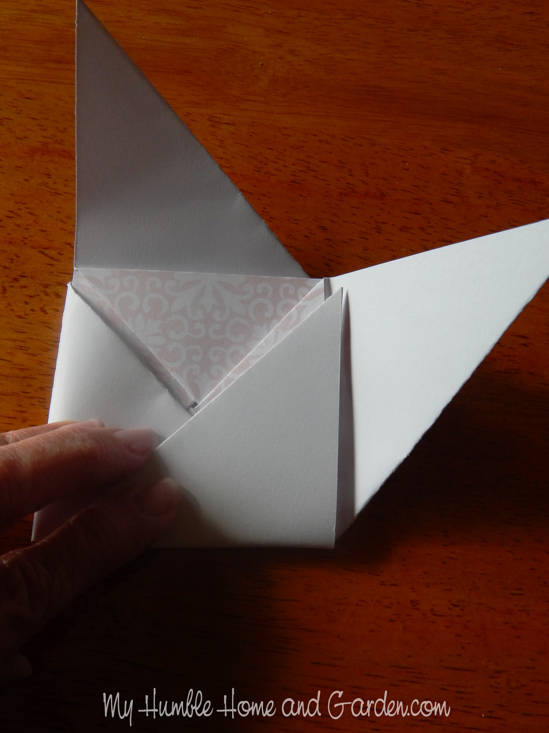 Fold the bottom flap upward. Posted on 2026-01-112026-01-11Full size 1875 × 2500 Fold the bottom flap upward. Fold the bottom flap upward. – How to Make a Victorian Puzzle Purse Birthday Card