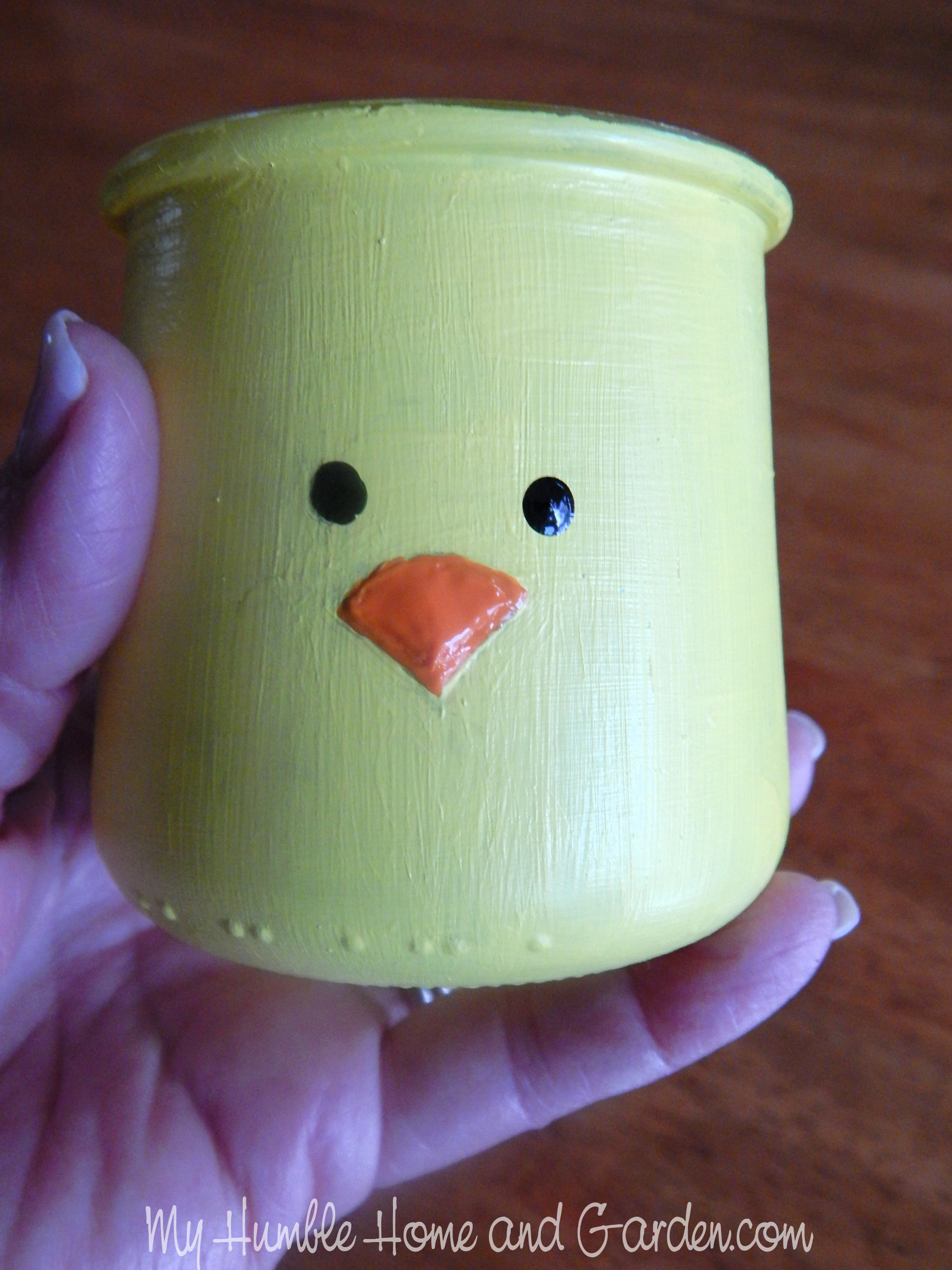 Create a beak with puff paint. The Cutest Easter Craft of the Year: Oui Jar Bunny & Chick Candy Holders #Eastertreatjars #Easter #bunny #chick
