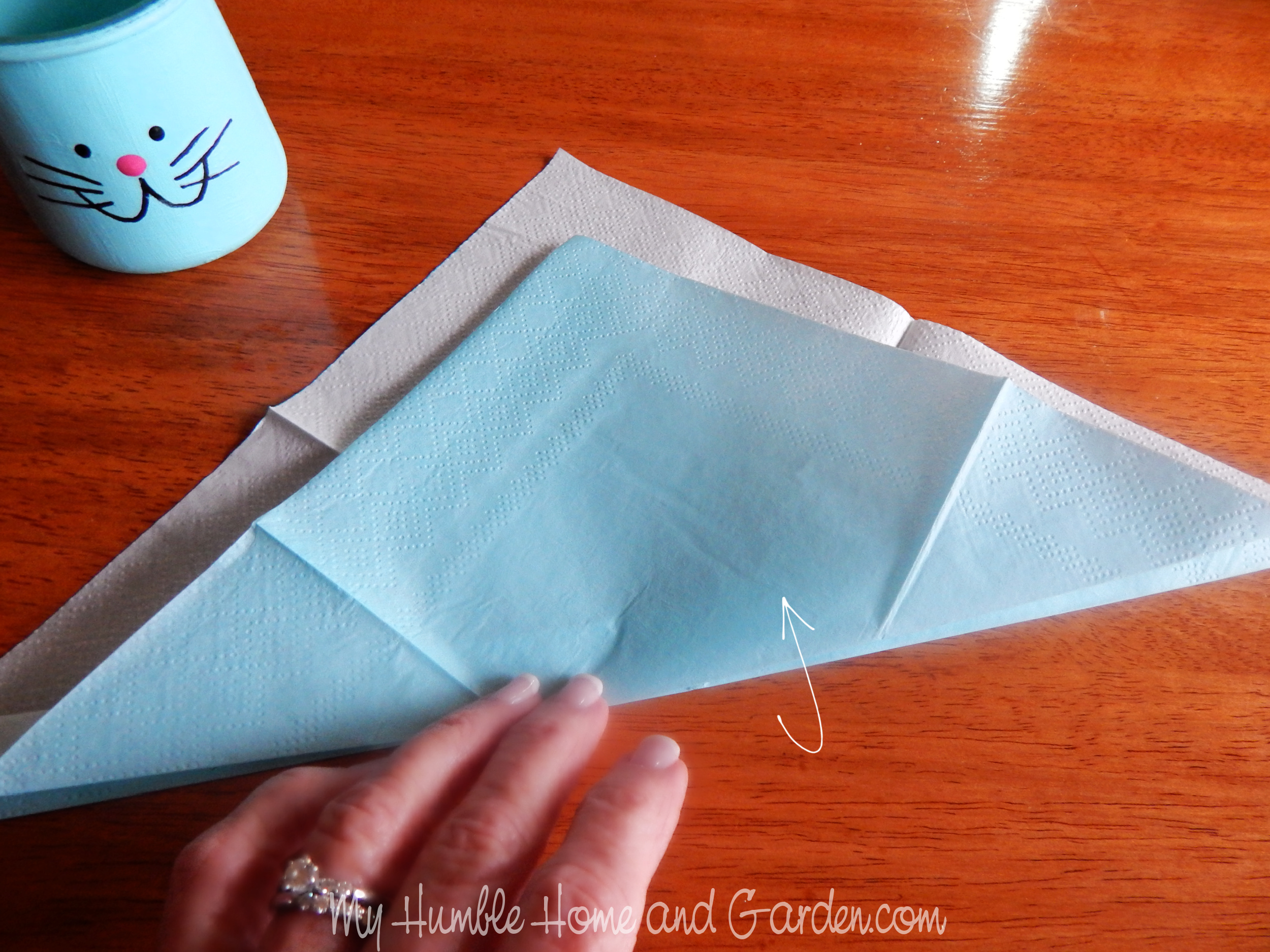 Fold the top layer back over and crease along the fold. The Cutest Easter Craft of the Year: Oui Jar Bunny & Chick Candy Holders #Eastertreatjars #Easter #bunny #chick