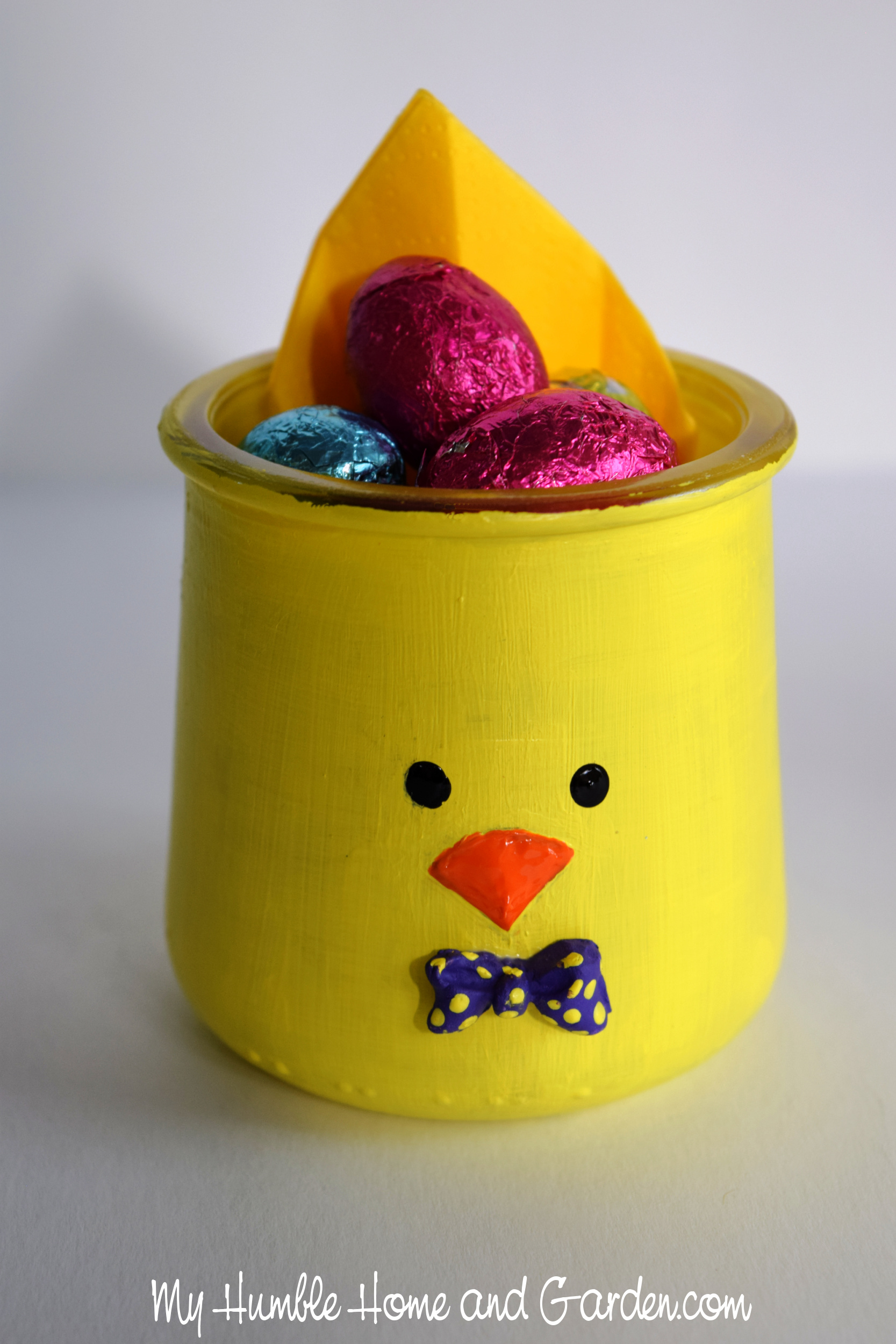 Oui yogurt jar Chick treat jar The Cutest Easter Craft of the Year: Oui Jar Bunny & Chick Candy Holders #Eastertreatjars #Easter #bunny #chick
