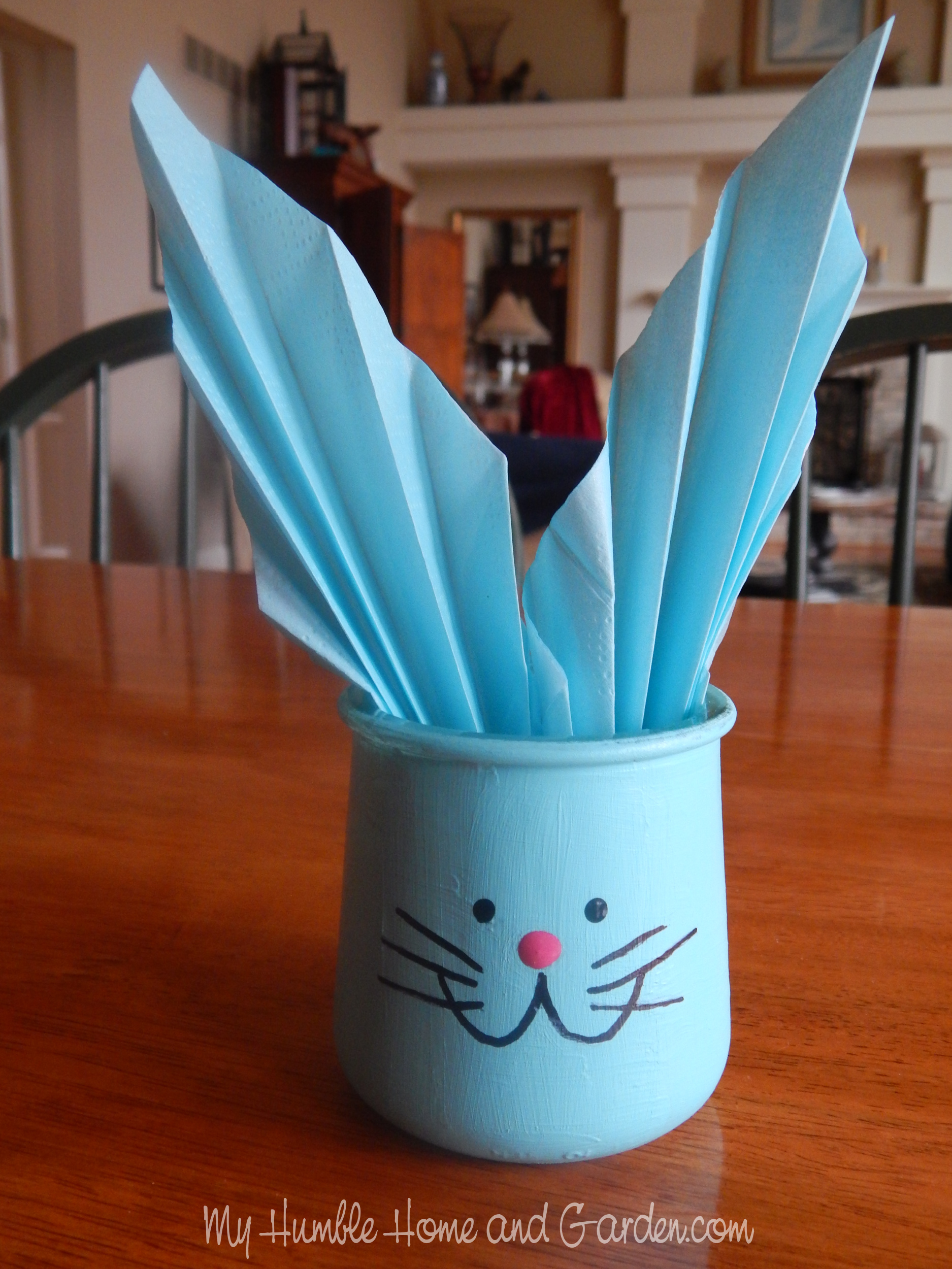 Place the folded napkin in the bunny Oui jar. The Cutest Easter Craft of the Year: Oui Jar Bunny & Chick Candy Holders #Eastertreatjars #Easter #bunny #chick